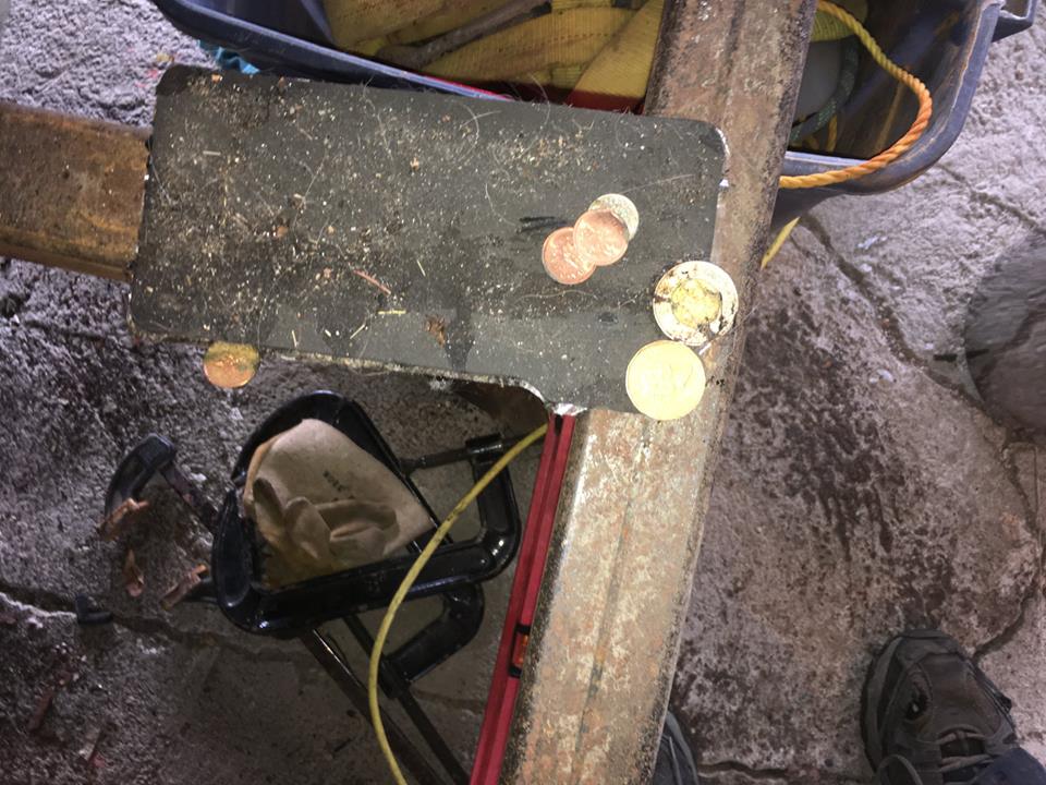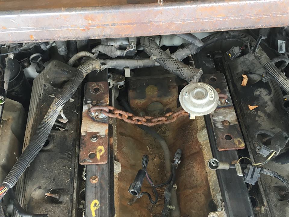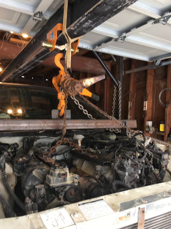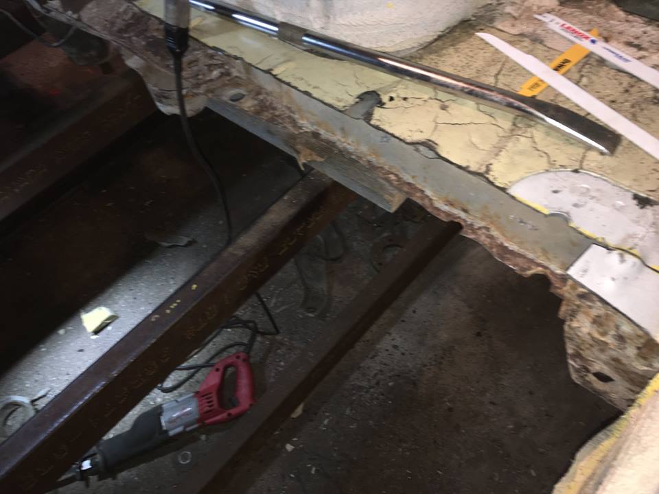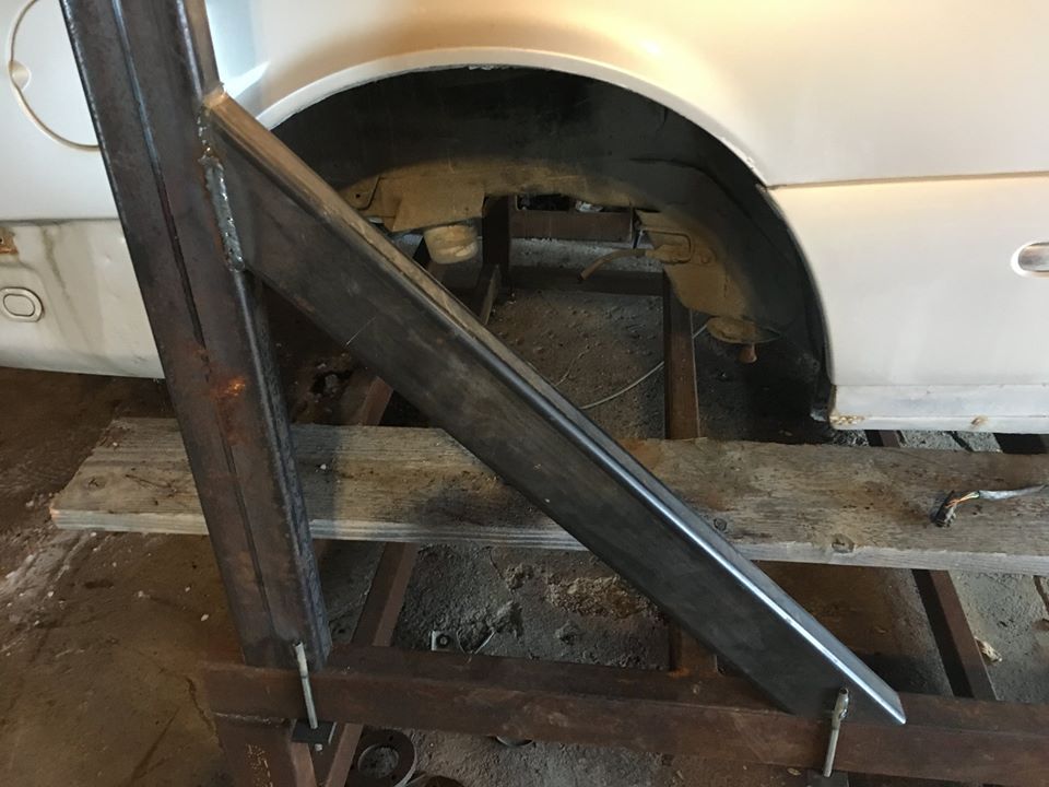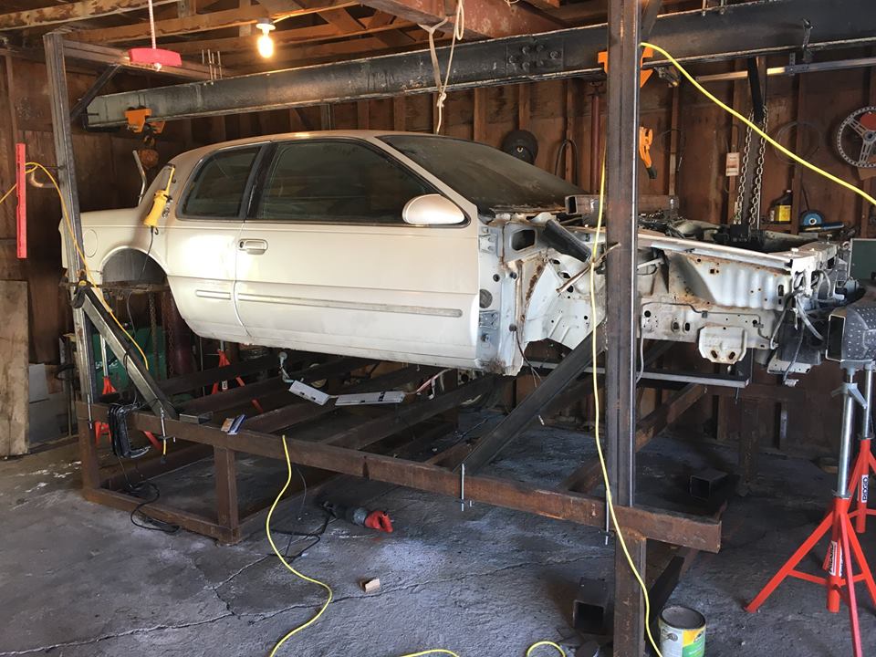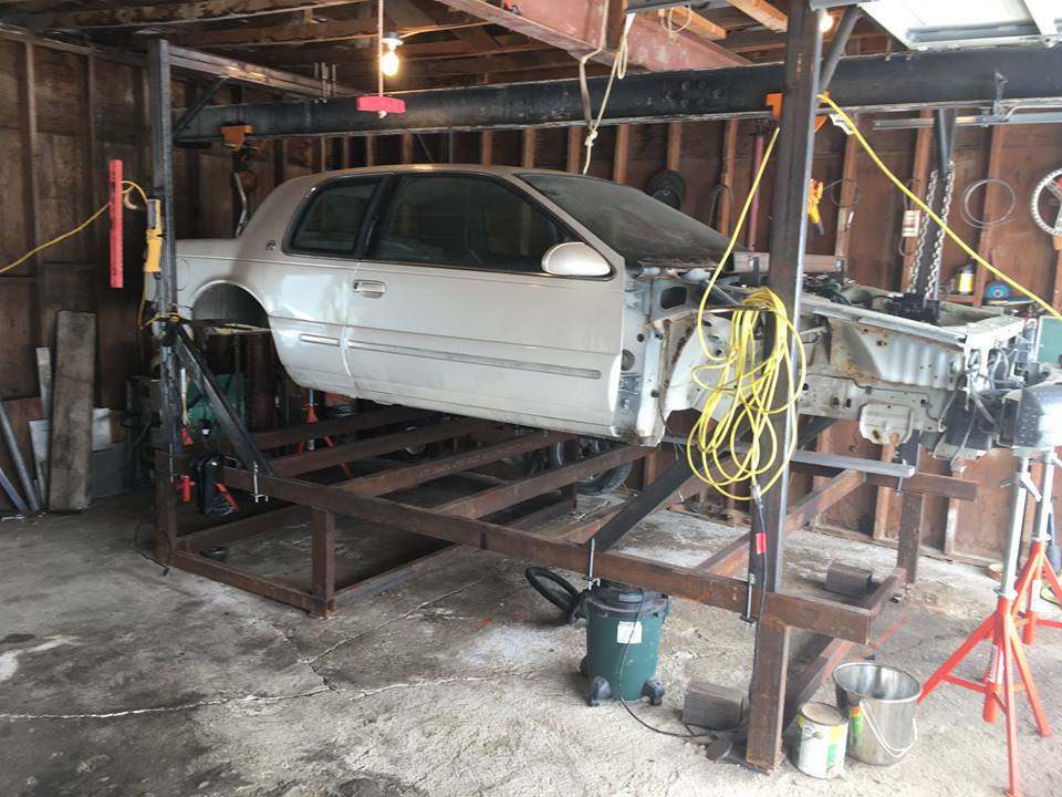 We are getting a little braver with our cutting. The body is hanging from its 2 lifting fixtures. When I am underneath I also add the rigid pipe stands for extra safety.