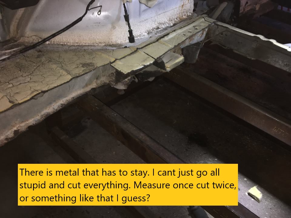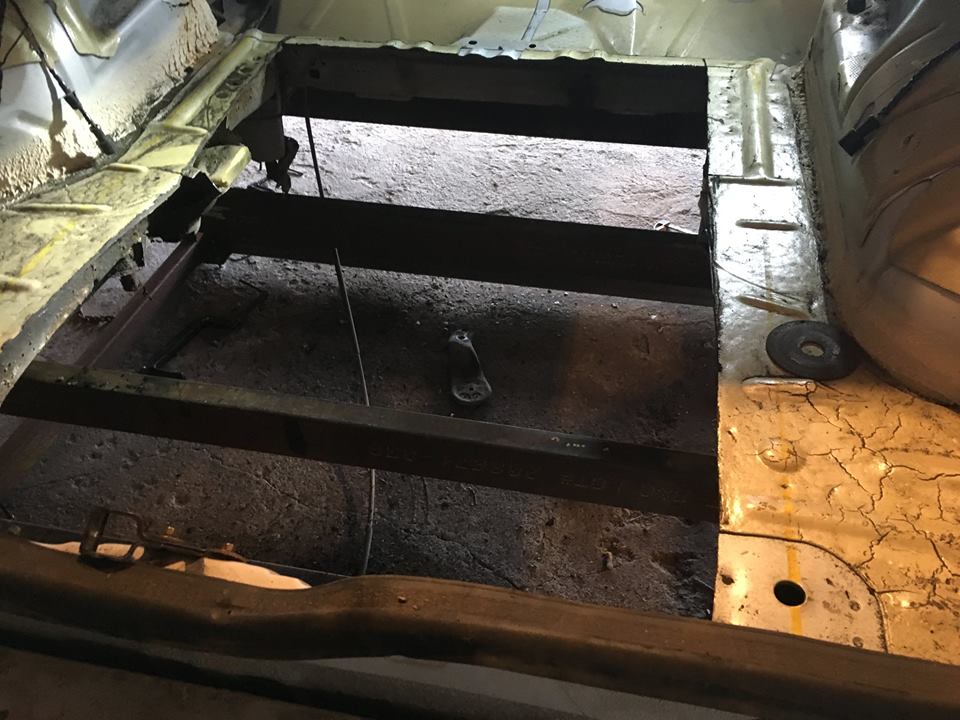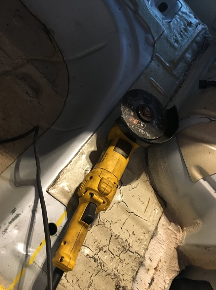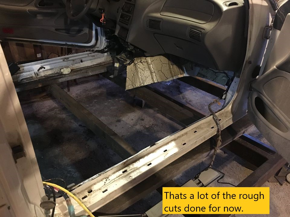 Time to get some working room. I knew from the start that a stock floor-pan would never work. This is a zip cut and sawzall deal for the most part.