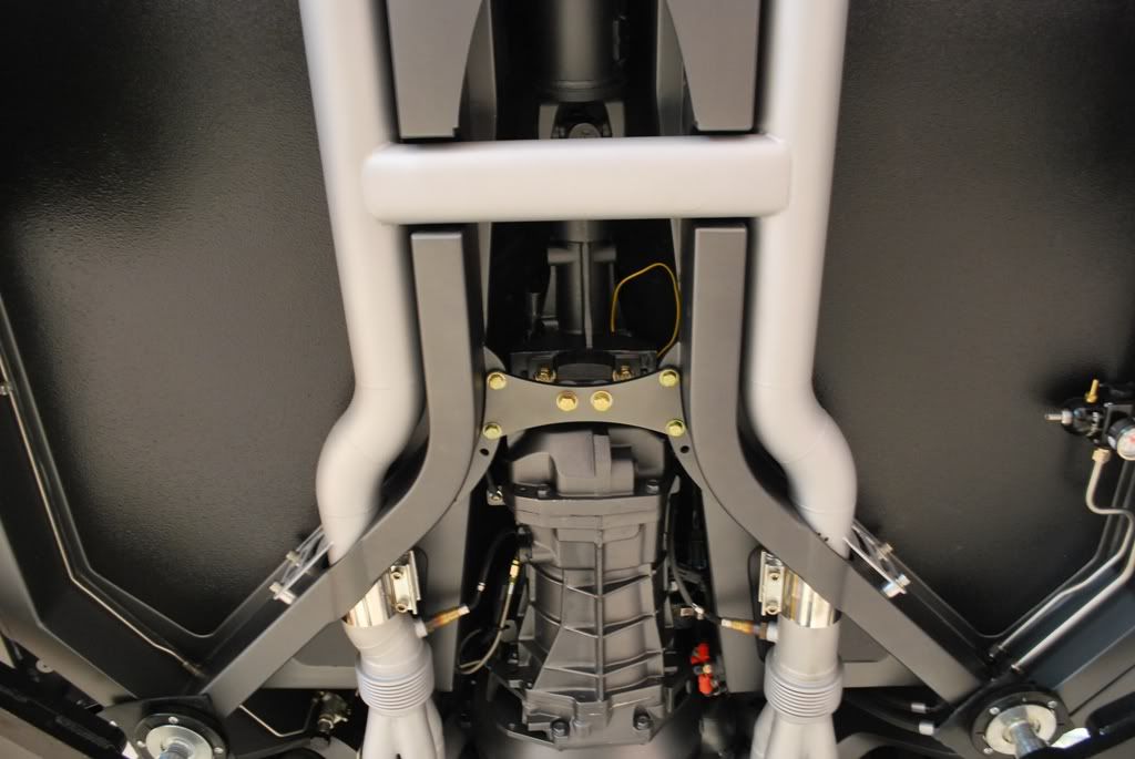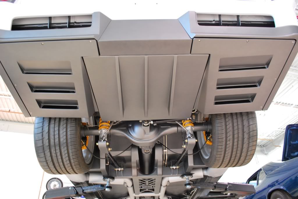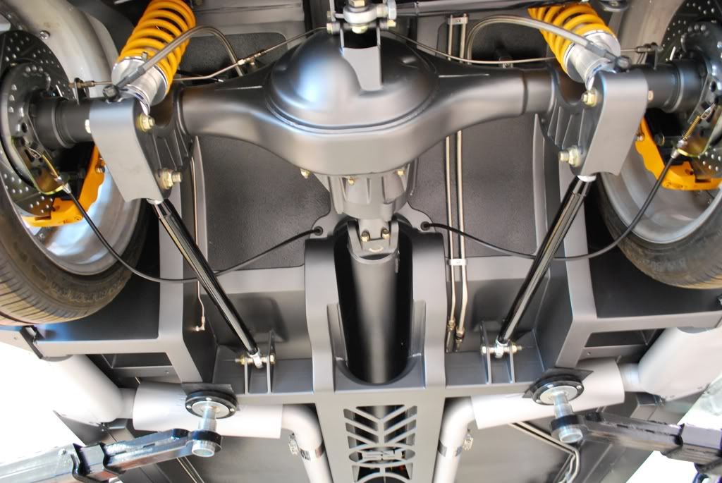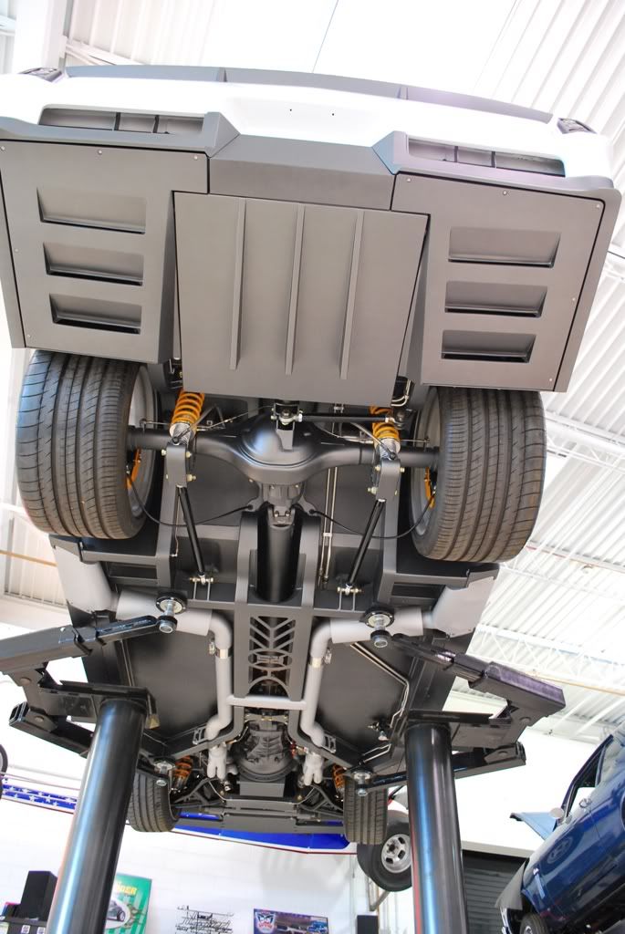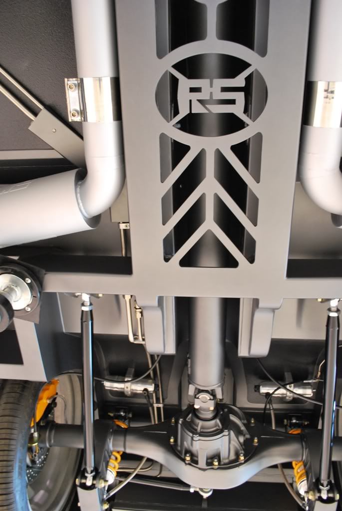 With a 4" ride height at the rockers, it gets hard to see what is going on under the car, so here are a few shots from the bottom.
