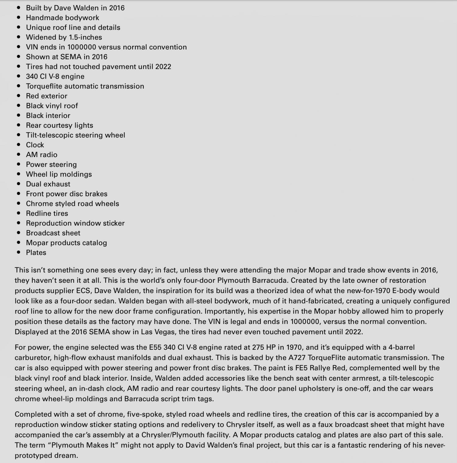 x2. That's a freakin cool build. I could see a hardcore Mopar guy driving it w/the family in tow to a big/national event. A crew-cab 'Cuda. I love it!