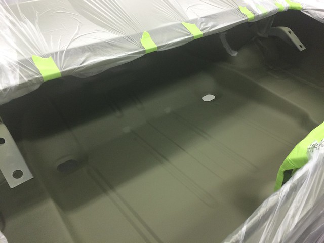 I went ahead and sprayed Raptor in the trunk as well. Everything back here will likely be covered up but I already had the materials so figured I might as well spray it.