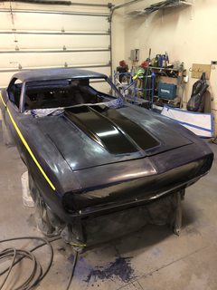 Good choice on the color. I think it'll look great especially if you're planning to do a pin stripe around the blue stripes to help set the colors off.
