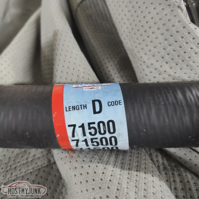 I am not sure where Vic got it, but he has the whole Dayco radiator hose catalog as a PDF. I sat down and looked up hoses that were 1.5" I.D. which matches the lower radiator and the thermostat housing hose size. I found this gem. It has 3 usable, tight 90 degree bends and plenty of straight section, and all of it is 1.5" I.D..