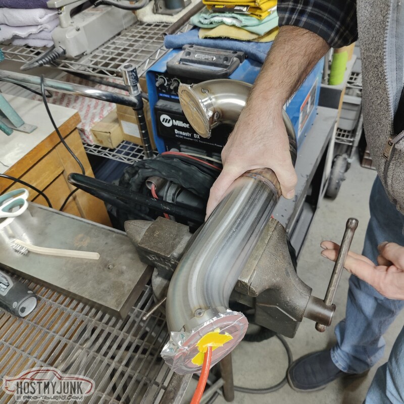 I had also ordered some 1.5" stainless, tight bend J-pipes, one with a 90 degree bend and the other with a 120 degree bend. Both were from Vibrant performance.