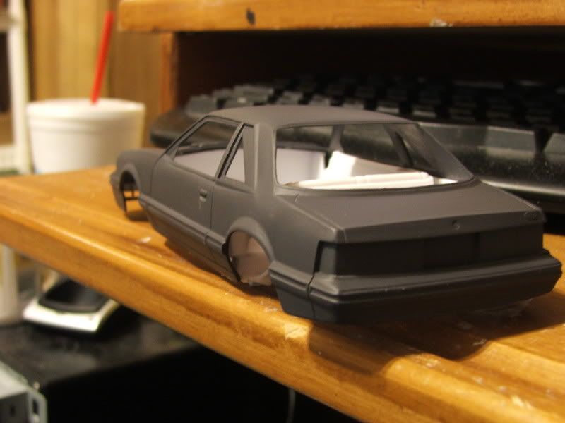 here is a little update on this. spent some time with it today, grafting in the mustang script on the rear bumper and adding the flare that is there on the 1:1 car.