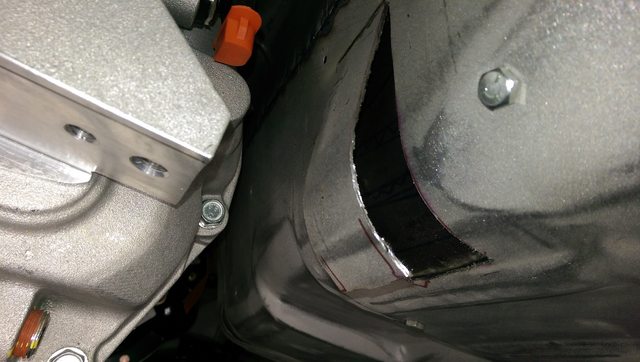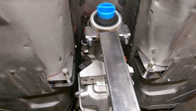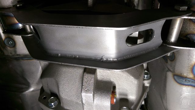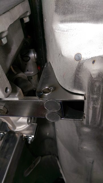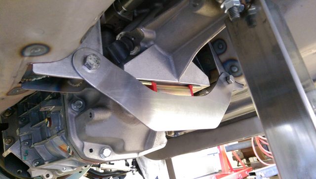 Then some tabs were cut out and tacked up the cross-member brackets.