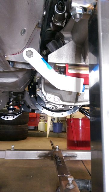 I started playing with what the cross member pattern will look like. Here is roughly what it will be (half anyway). I need to check all my angles before I cut out the plates for the cross-member. The trans is a bit low in this photo, slightly over 3 degrees down.