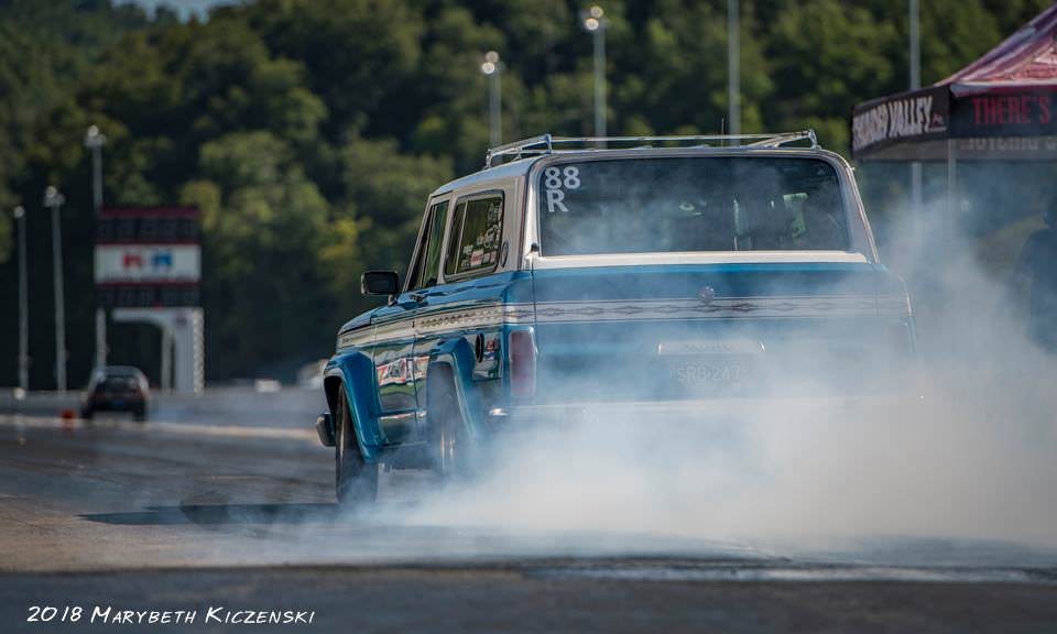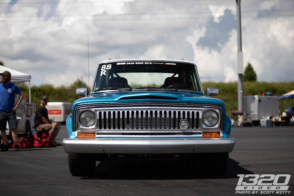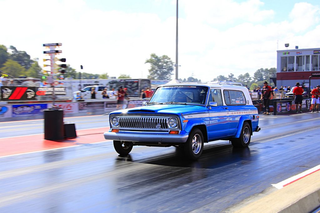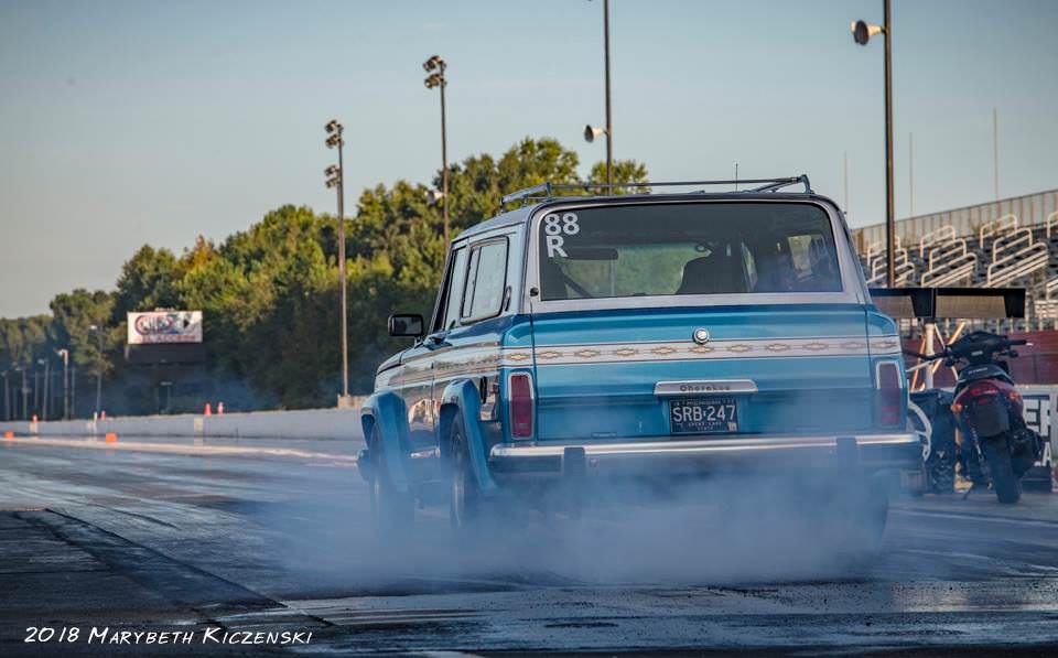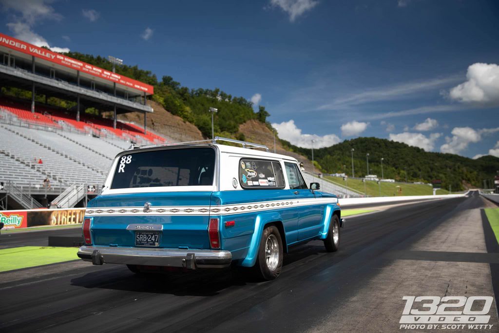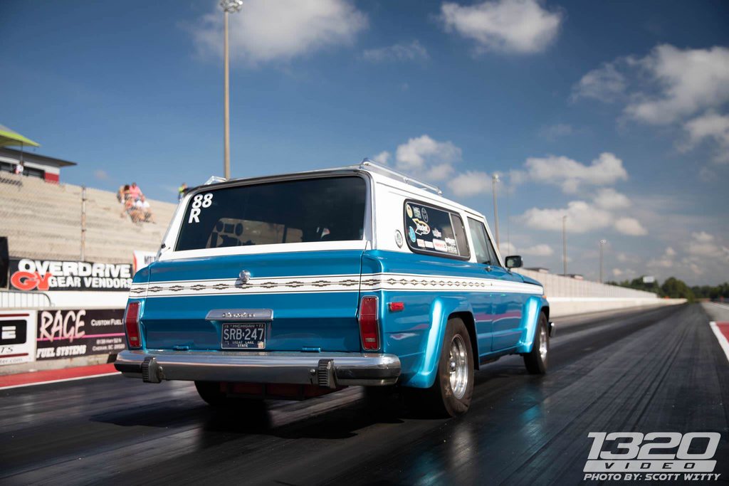 1976 Jeep Wagoneer, stock appearing, 407" AMC & nitrous 11.3 @ 114 rip