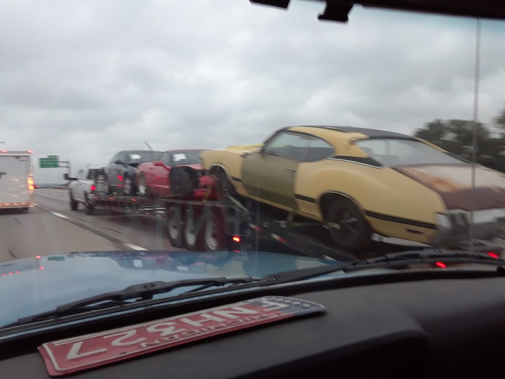 Cool trailer of cars we passed.