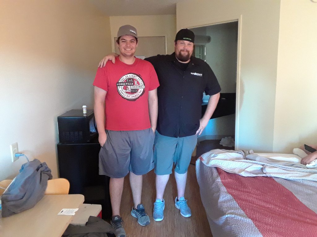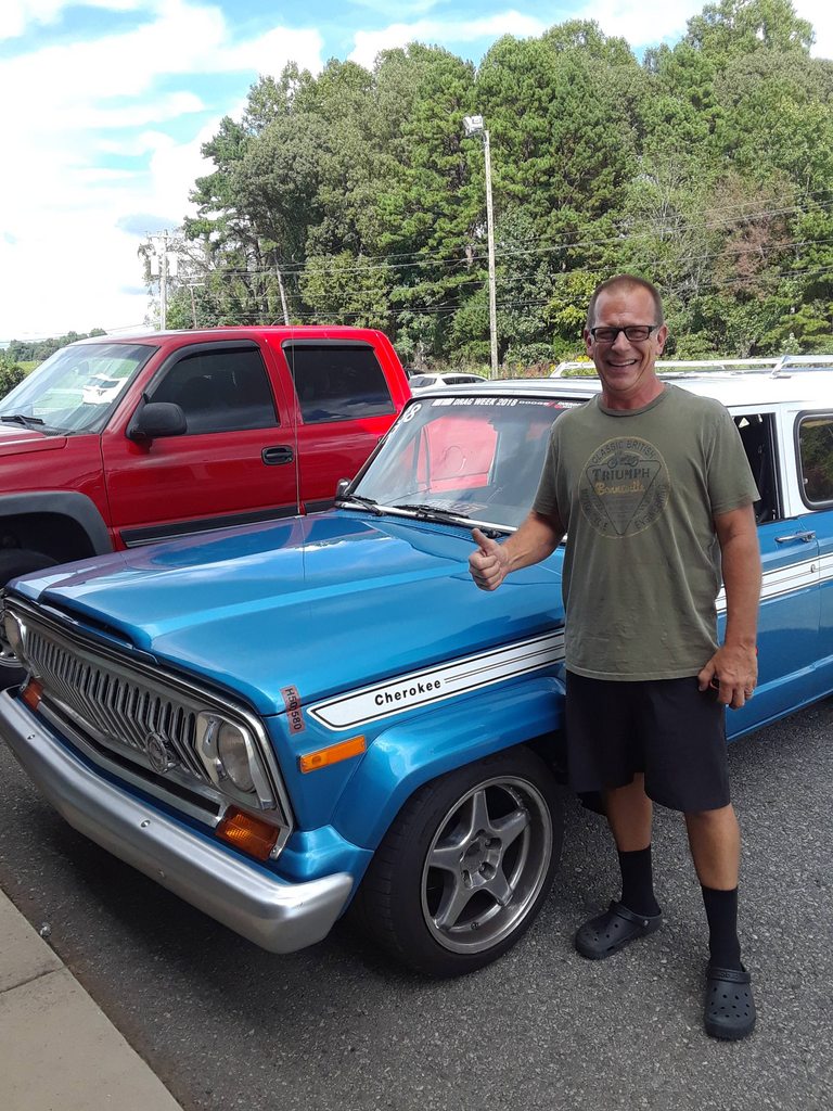 Wake up, get showered, just about to head out to Thunder Valley and there's a knock on the hotel room door. 7:45 is kind of early for housekeeping. Turns out it's Mitch and his brother Tyler. Mitch is the owner of the shop that did the paint and body on my Jeep. They hopped in his Cobra Wednesday after work and drove through the night to Tennessee to surprise us. The picture I posted from the hotel room window gave them a clue about the type of hotel we were staying at but they had no idea what town we were even in. So they drove around all morning looking for the hotel with a blue Cherokee in the parking lot. Well, they found us. What a huge surprise, great friends!