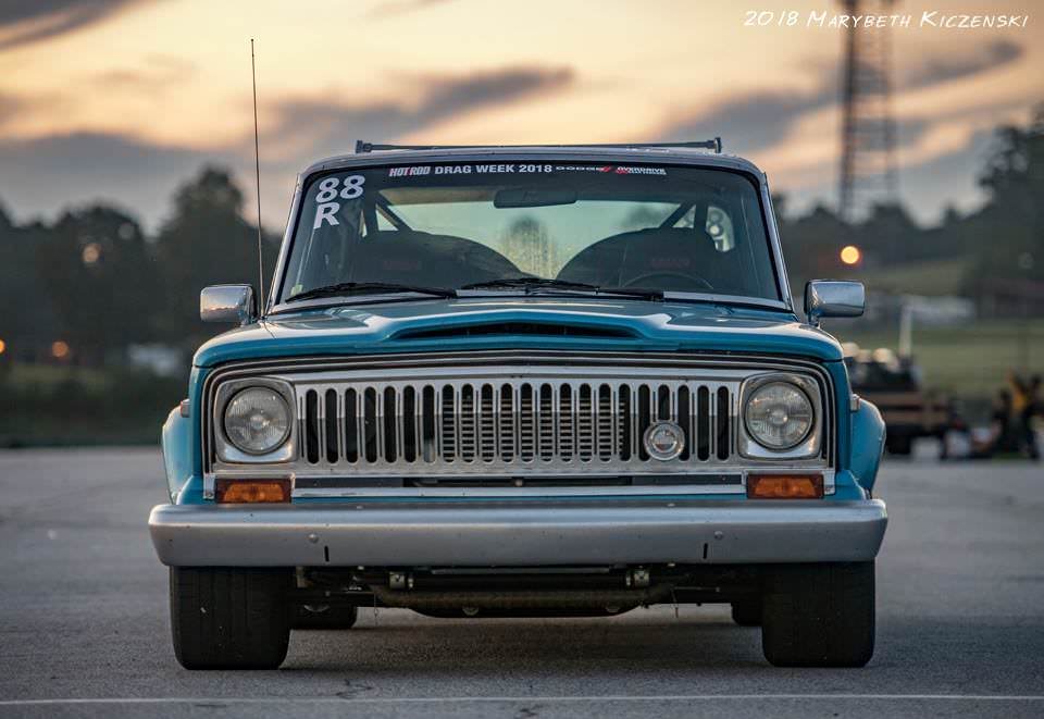 Prepping for Drag Week. Keeping in mind that the Jeep hasn't made a solid, clean A to B pass in nearly 3 months. Transmission is fixed and back in but no time to test. Just gotta have faith. Finishing up wiring for the horn and giving it the final once-over in this picture.