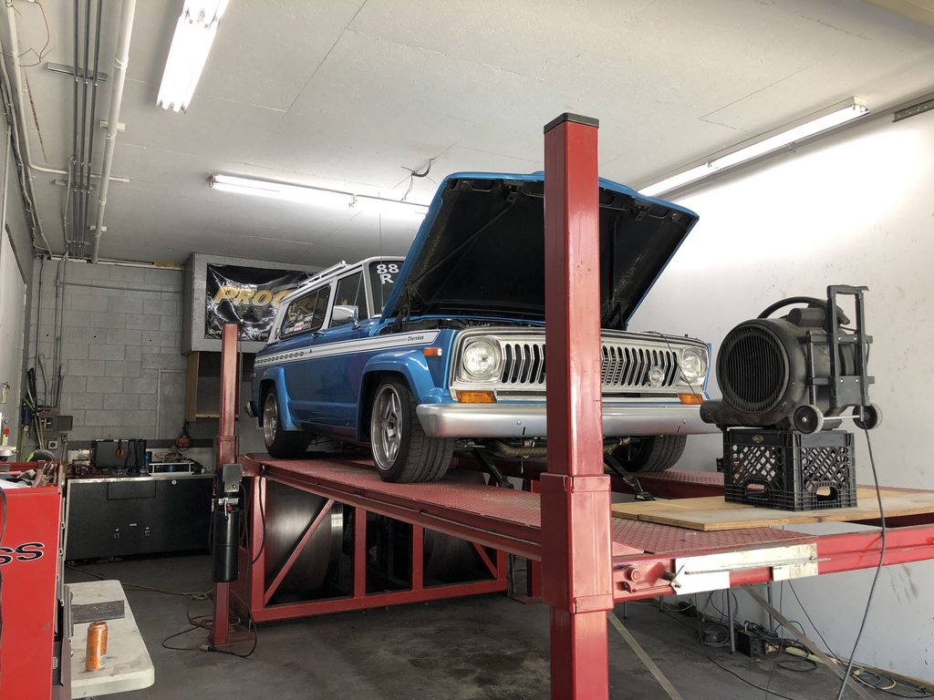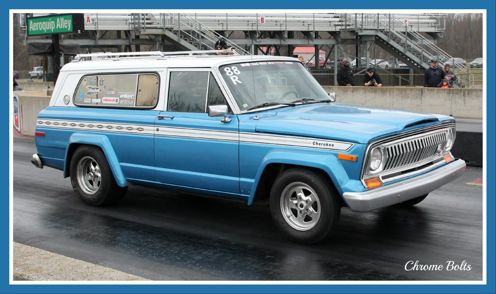 1976 Jeep Wagoneer, stock appearing, 407" AMC & nitrous 11.3 @ 114 rip