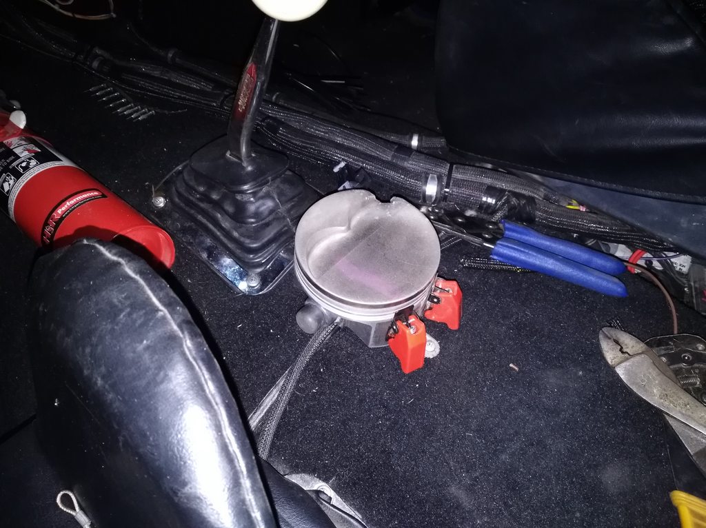 Winter updates to the Jeep were all electrical. Added a driveshaft speed sensor, electronic boost control, and a line lock. I mounted the switches in an old torched piston from my nitrous days.
