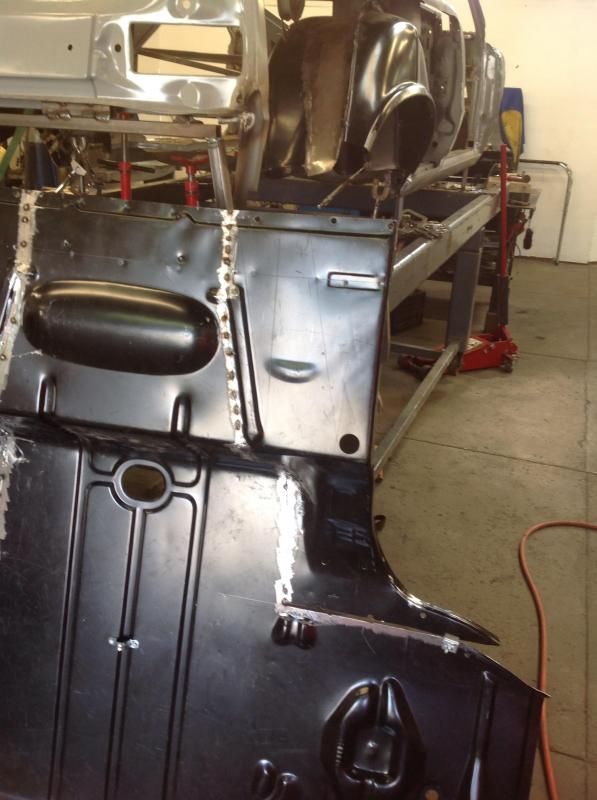 Well everyone here's a quick update on what's been going on with the car, we got back from SEMA and decided to go ahead and get started on this car. We ended up narrowing the trunk for a total of 10 inches, then widening the wheel wells 5 inches per side we also narrowed the under seat area 5 inches per side as well. Within the last week of being back from Sema we ended up doing all these modifications, which included hanging quarter panels narrowing the floors, narrowing wheel wells etc. We are trying to get the car back on the chassis as fast as possible. In a attempt to save some time on fabrication we decided to chop the rear frame rails off and redesigned them slightly. The rear frame rails are being narrowed roughly 2 inches per side, this allows us to re use a factory axle transition of the factory floor. While this does not need to be done to a RS chassis normally we are doing it so we can reuse the factory front floor pan area. I do not recommend an average Joe doing this, unless he has a frame table and experience in modifying frame rails. The only reason we are going through all this is we are after a completely stock appearing 1965 GTO trunk.