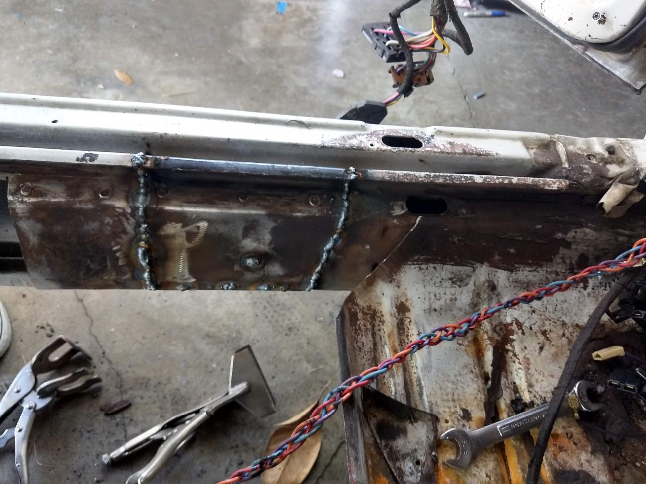 After I'm done with the welding and grinding I'll take a rust/paint eater wheel to the whole area then prep and paint it with Eastwood rust encapsulator primer top and bottom. Then seam seal it, paint it white (body colour), and the bottom is getting under coating. The inside of the car needs to be cleaned out really well and some wiring work done to improve the routing and organization as well as bring power in for the power and heated seats. Power will probably run off of the original power supply from the fuse box but the heat will need fresh power off of the underdash power point I added specifically for stuff like this.