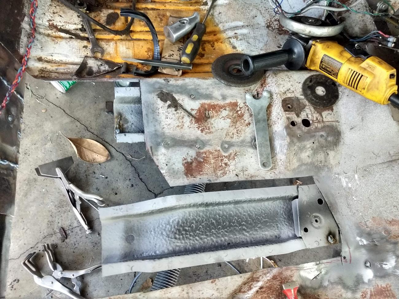 Passengers side under floor structure is 90% done. Need to redo the last spot welds on the underside of the bracing and patch a small section of the second brace that rusted out. Then it's weld the seat mount plate on and then the floor over it. I'm guessing I've got another 4-5hrs left on the passengers side depending on how long it take to stitch weld the floor back in to keep it from warping. Then it's seat mounts and final paint to wrap that up.