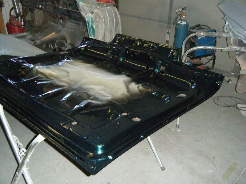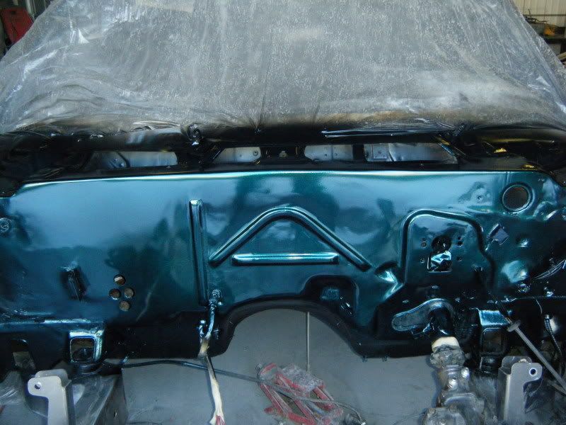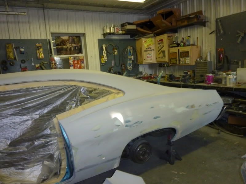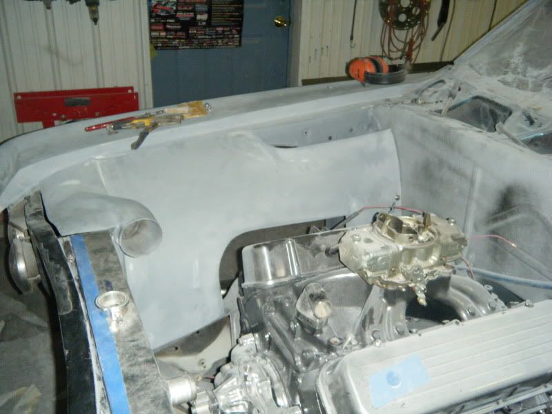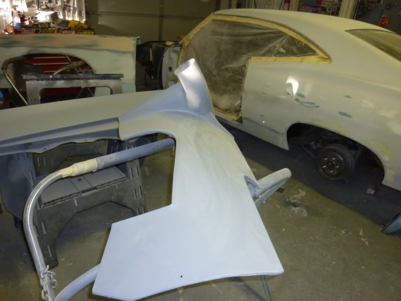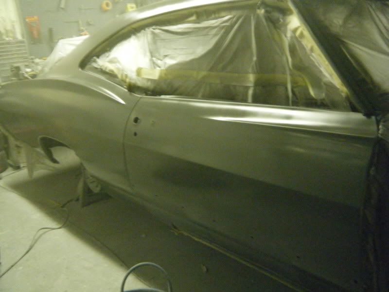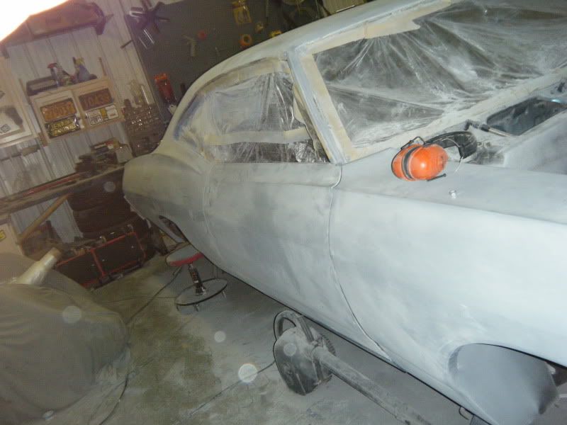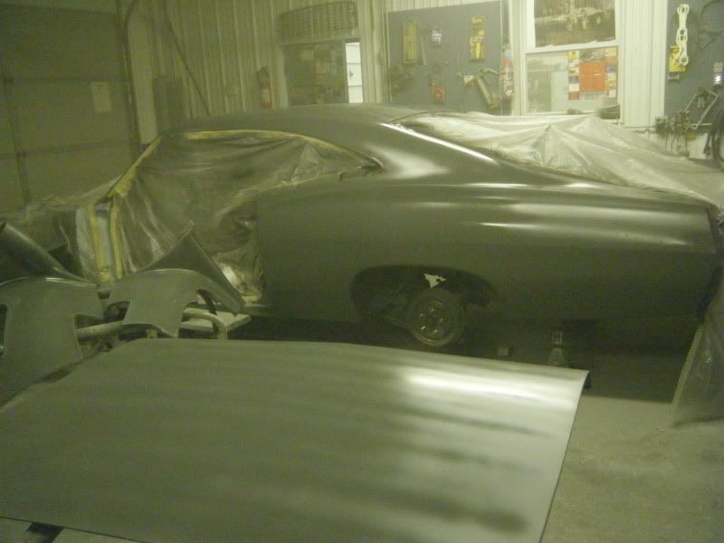 finally got the car all sanded up. sprayed the jams and firewall so i can assemble some of the thousand pieces scattered throughout the garage. sunday afternoon i washed the garage down head to toe and it made a huge difference as the parts sprayed have to be some of the cleanest parts ive done, even from when i sprayed in a booth at the dealership.