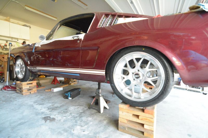Also, wheels/tires showed up. 18x9 all the way around, with 255/40/18 front and 275/35/18 rear. Will have to mock up the rear wheels/tires and have the Ford 8.8 rear end narrowed to match.