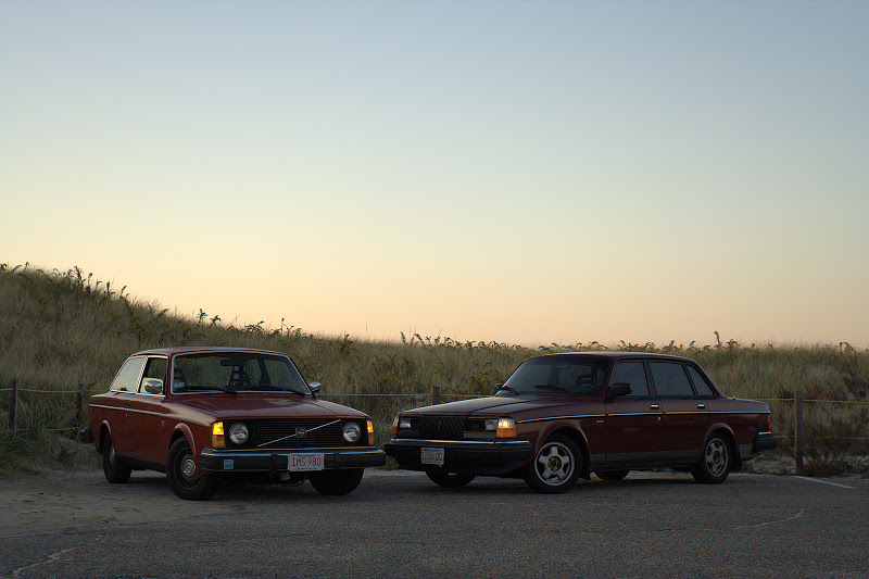 The framing isn't perfect and I don't like how the bumpers intersect, but you can't win them all. My old 79 242 on the left, my buddy's old 89 244 on the right.