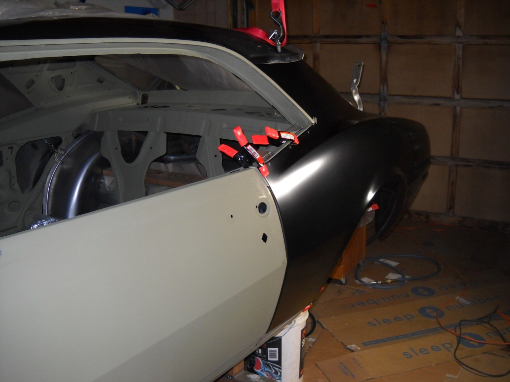Thanks guys ... I'm getting stronger every day that I work my back .... went to work on that driver's side quarter panel today! Got her pretty much where I think it lines up best .... need to check the body line from door to quarter before I start welding thou.