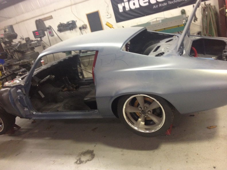 Here is a picture of the fenders going on so we could test fit the new GoodMark Industries hood. (Sorry about the picture Quality)