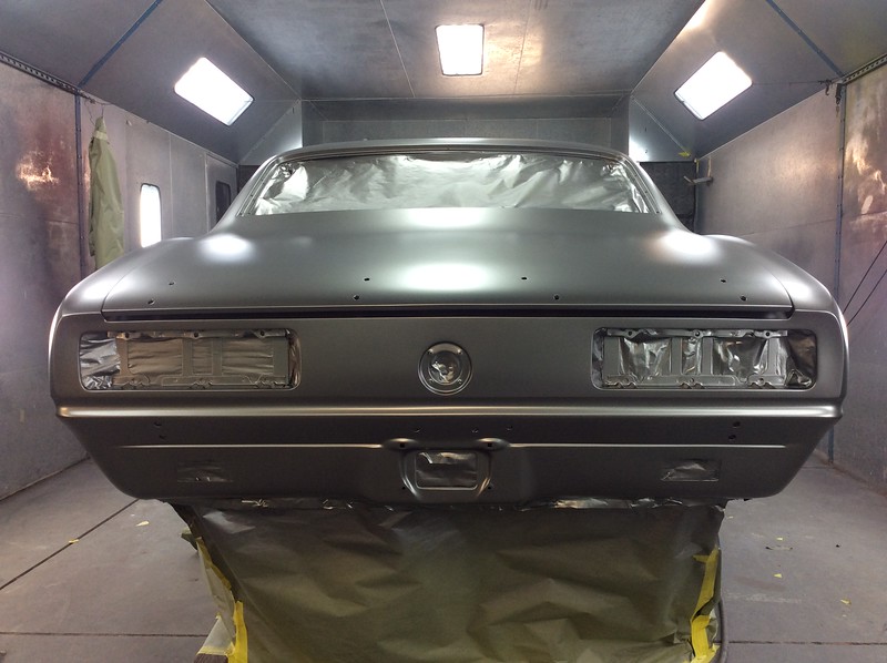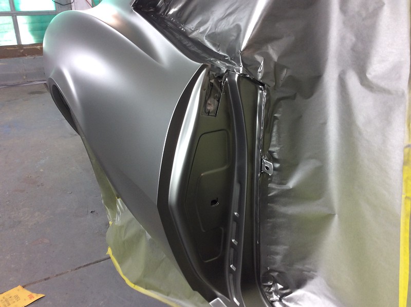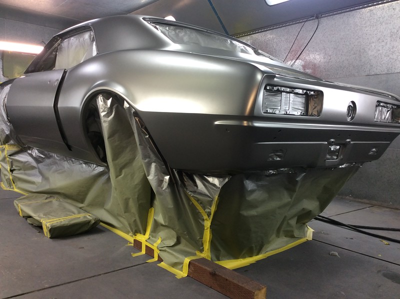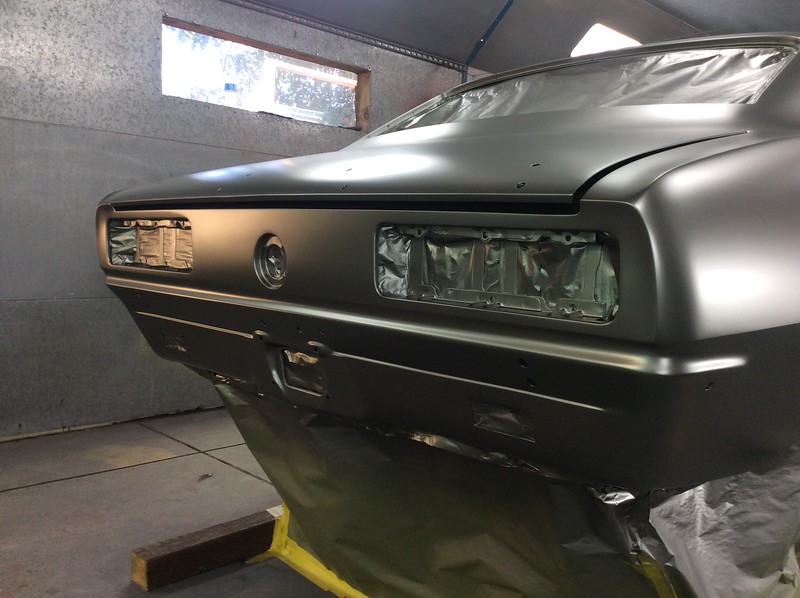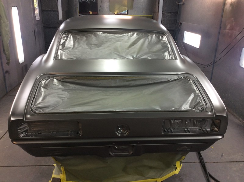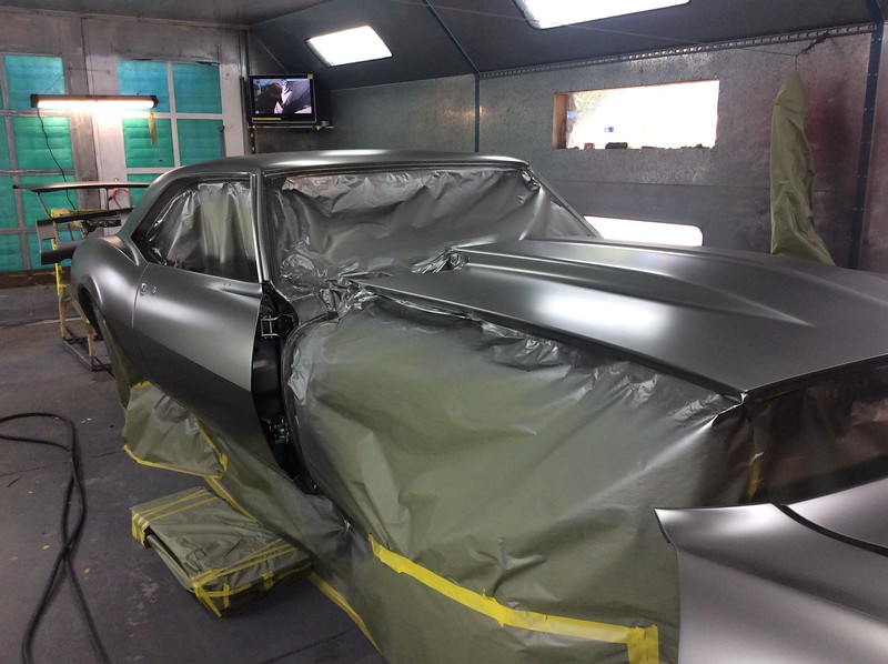 Looks like the final coat of color is on the car and the clear is being applied today. I can't wait to see it after all the cut and polishing is finished.