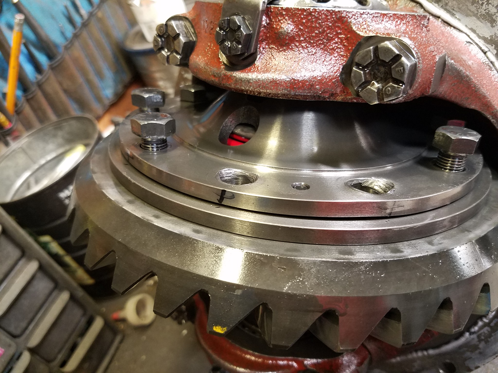 Thankfully, I'm pretty certain it is pinion shaft, crush collar or bearing related and not the locker or gears. You can feel the pinion bind up randomly when spinning it by hand, sometimes bad enough it's hard to turn by hand. The ring gear looks fine to me and there is no extra play anywhere I can find.