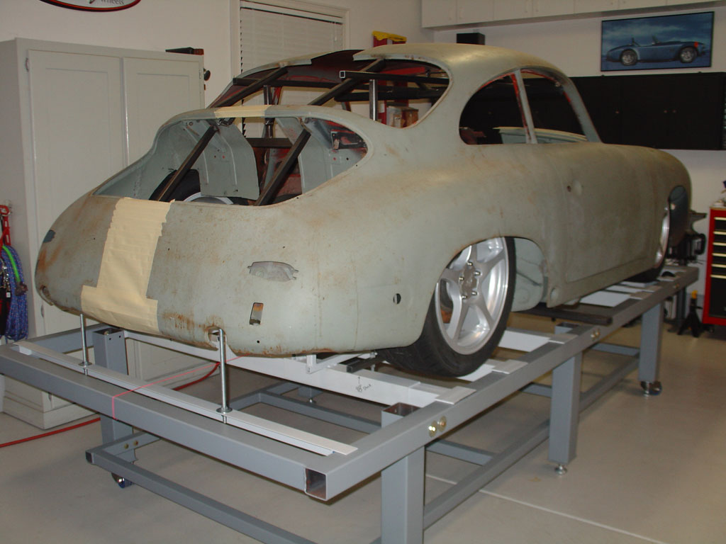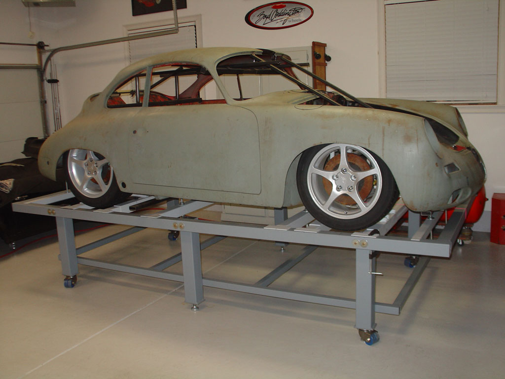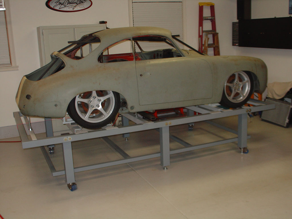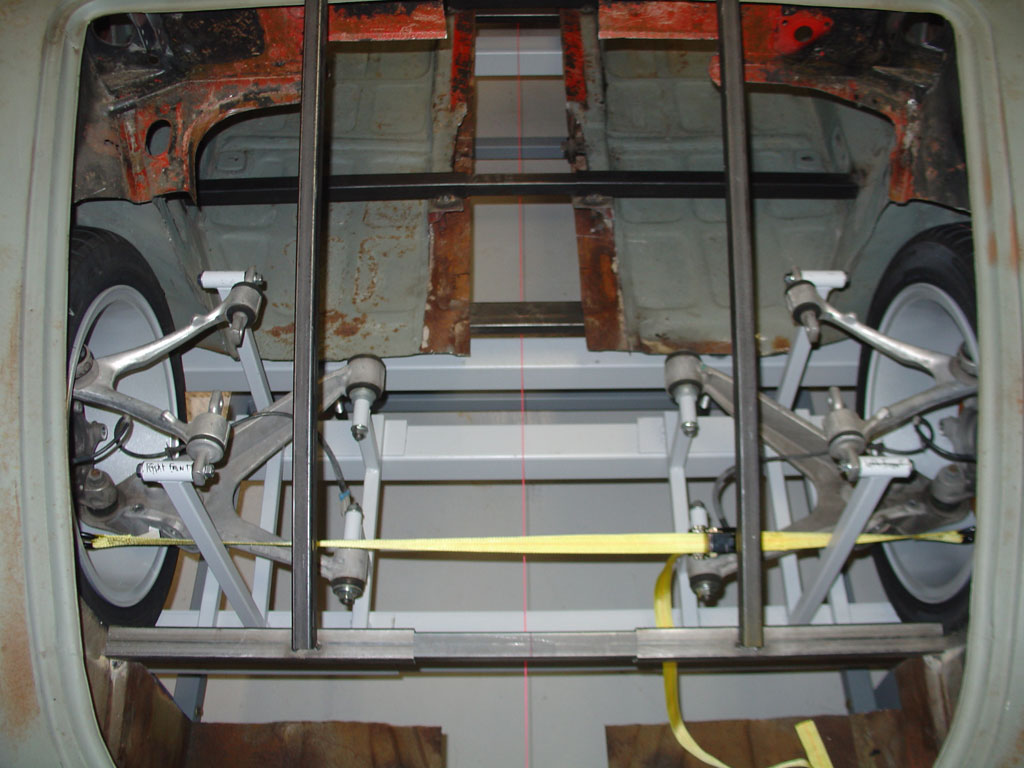 Chris, Excellent comments. The body profile of these cars is very tear-drop shaped. The track is very wide in the front susp - and pretty small in the rear. The rear wheel well opening changes pretty drastically from front to rear of the opening - something like 2 or 3 inches. It gets very narrow at the back. I attached a pic looking straight up - but it's difficult to see it clearly. So the plan is to add a 2 inch wide pie shaped insert into the fender - pointed end at the door edge, and 2 inches wide back by the tail light. That will flatten the difference and allow me to either run a wider wheel - or move the track out. I agree that the front of the wheel well and all that extra room ruins the appearence. I'm thinking about running the 285's I have in the rear right now - so I'll probably move the track width and raise the entire car an inch and lower the rockers. It's 6.25 in the rear and 5.25 in the front.