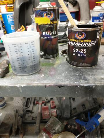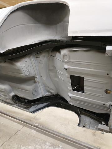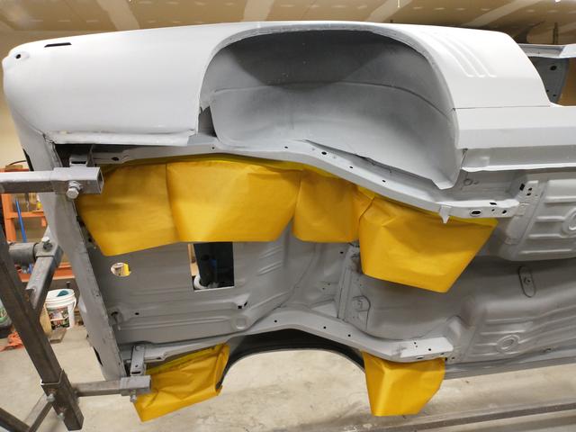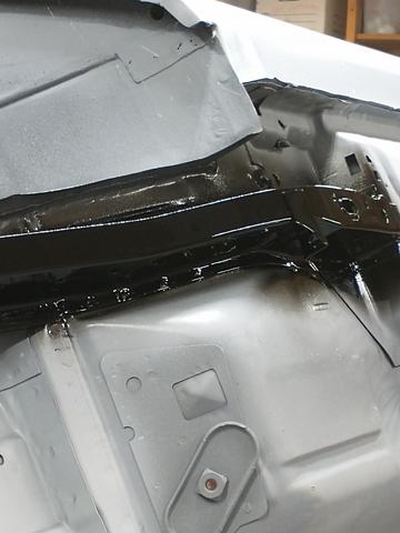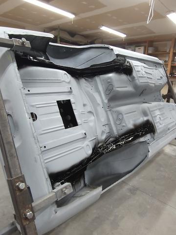 Time to work on the underbody. I painted the frame rails today. Tomorrow I'll mask off the frame rails and do the floors. I'll do them with Rustoleum bed liner, then I will paint it body color.