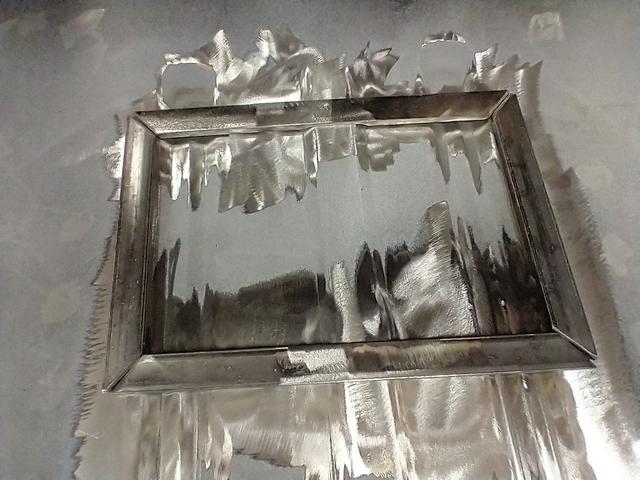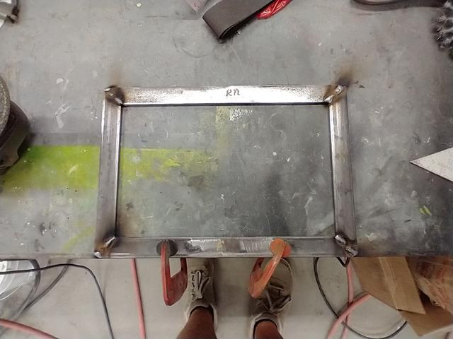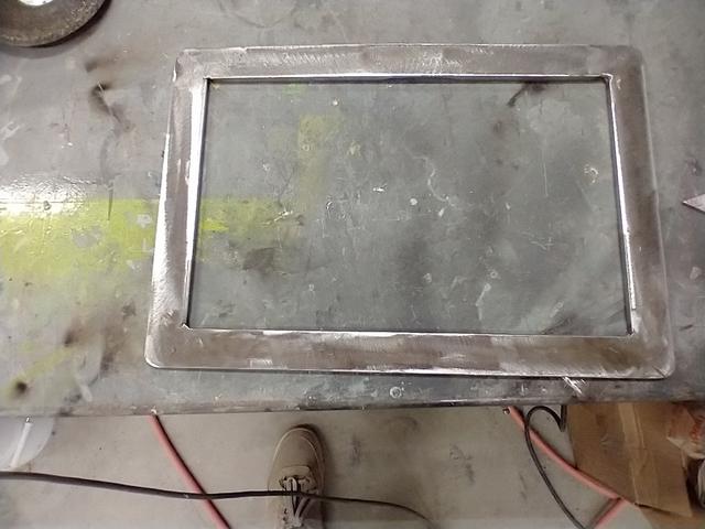 1" x 1/4" flat bar. Opening is approx 12" x 7"
