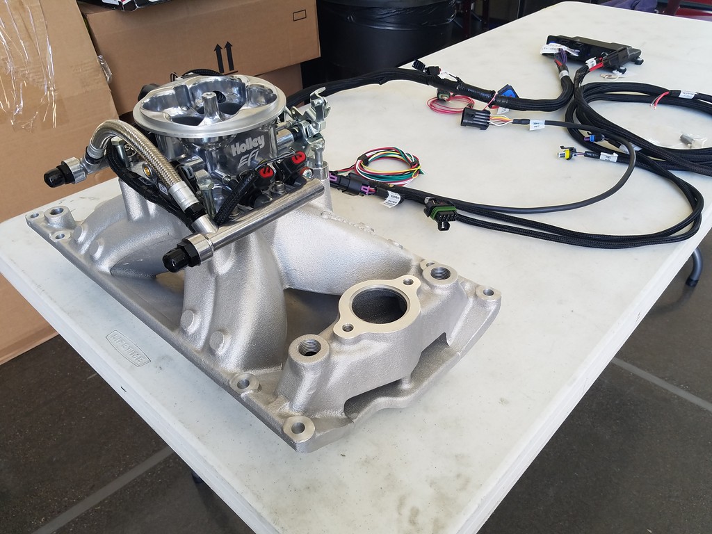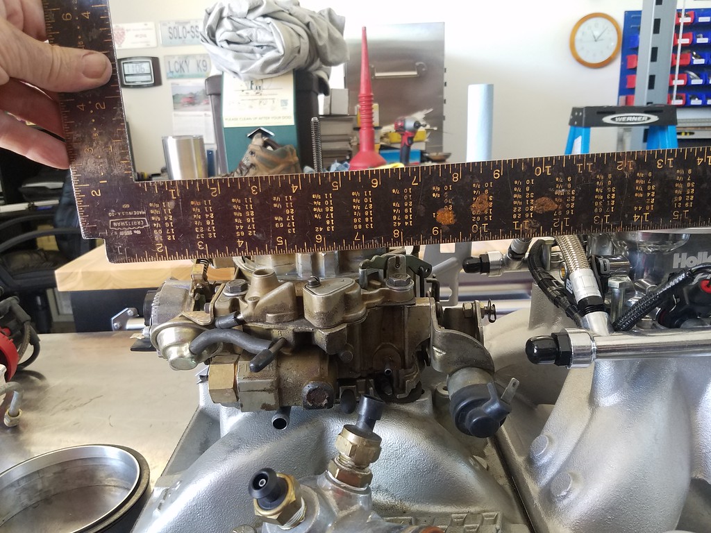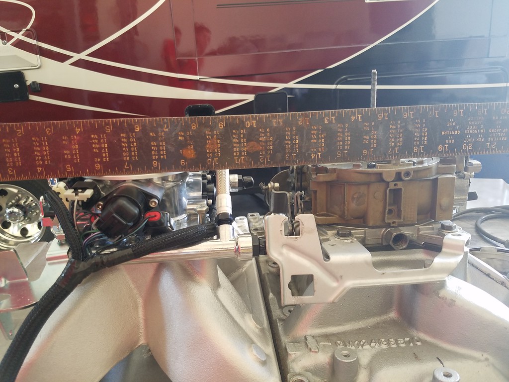 Showing air cleaner spacer that makes my housing meet the hood correctly on the Q-jet vs the new TBI.