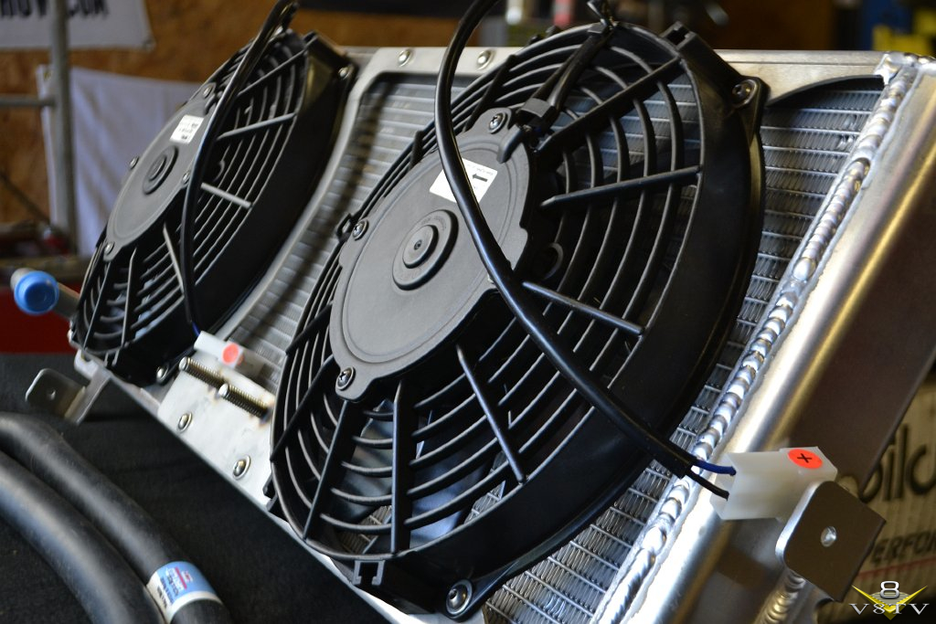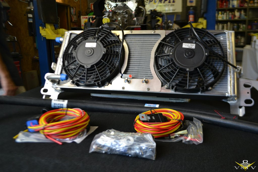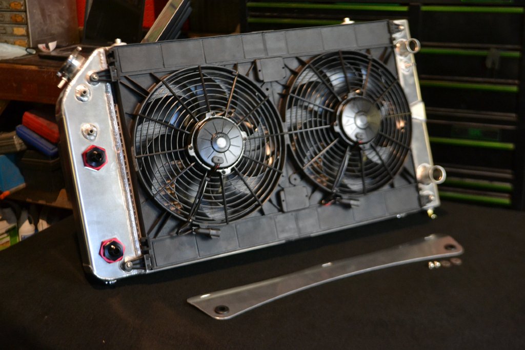Here is our C&R cooling module complete with fans designed to handle up to 1000 HP and drop right in to the first gen. Camaro. It has the oil cooling and steering fluid cooling built in.