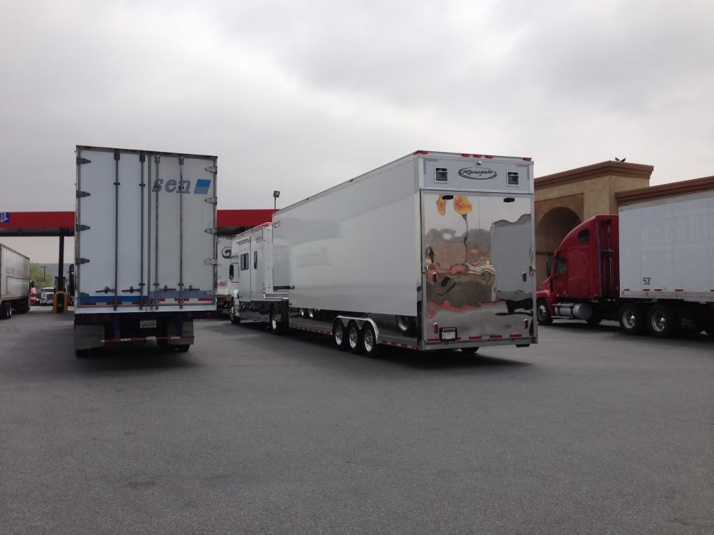 This little trailer adventure started out with my canceling the 48' living quarters two car stacker.... and in doing so - talking to the Sport Truck RV dealer where I bought the truck. He mentioned he might have something that would "work" for me.... so I told him I was going to Cool April Nights in Redding, California... and that I'd roll on down to Phoenix afterwards to take a look at what he had.