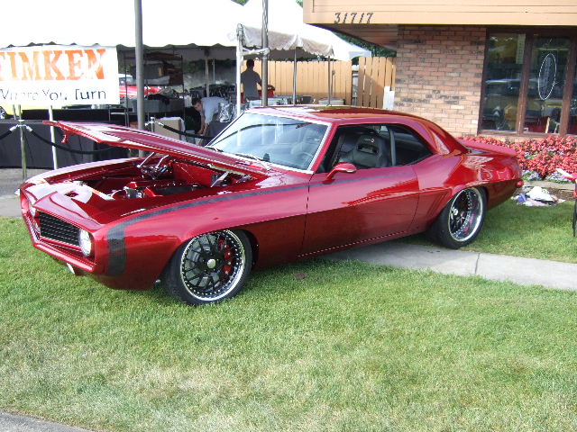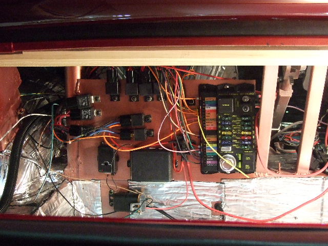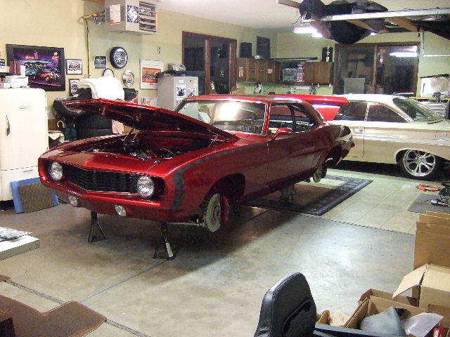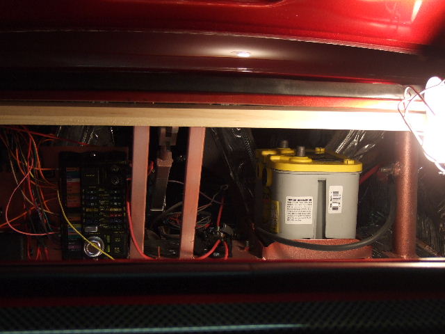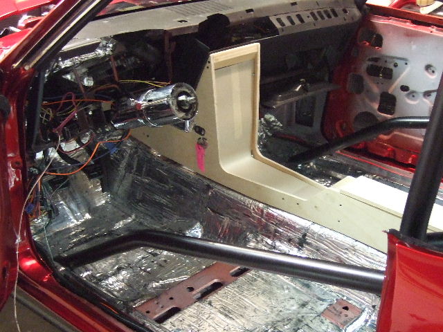 I have been working on it since Woodward every night. One would think it should be further along than this, but when you only get a few hours every night it takes FOREVER, so it seems anyway. I was hoping to have it running by now, but probably by the end of the month I might be able to turn the key. Obviously from the pics there is still quite a bit of work left, but a lot of it is just cleaning up some wiring and getting the dash installed for good. It's already been in a few times trying to get everything to fit just right and I think I pretty much have it ready to go in to stay. Plumbing is all done except upper radiator hose which I should have this week. The center console has a lot of work left on it, as you can see. Anyway, here's some pics that I took before I quite for the night(at midnight as usual) I'll also post a few from Woodward, we just pushed it out there for the day. Most people didn't even realize it wasn't done.
