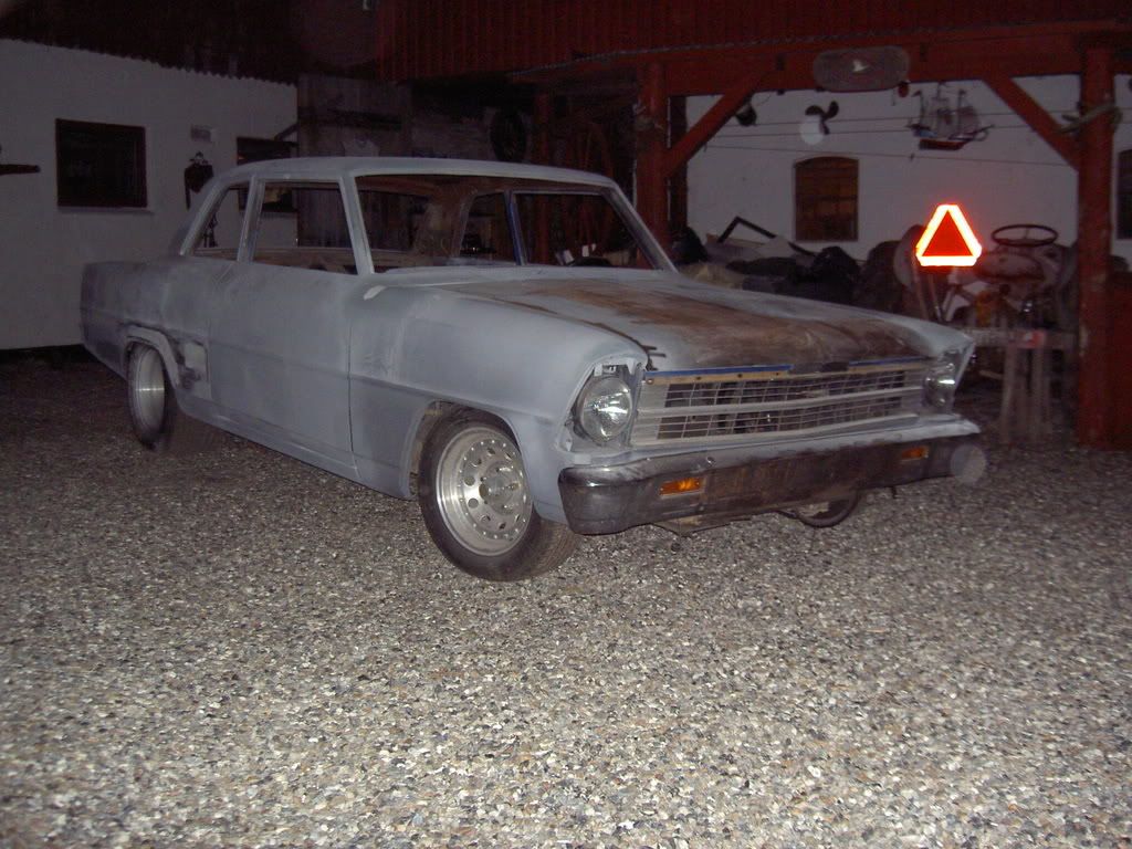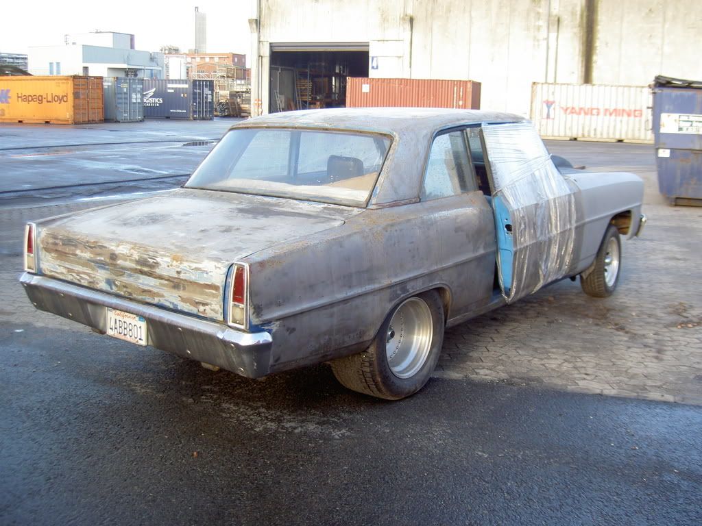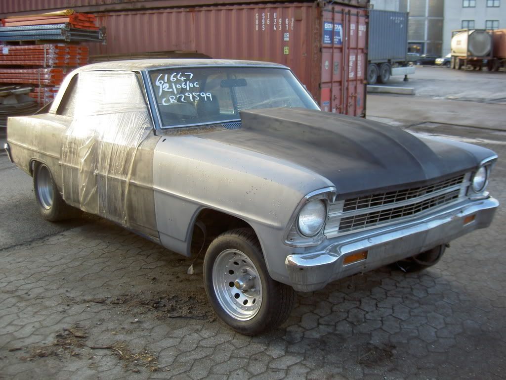 The car is an 1967 Chevrolet Nova Sedan. I bought it a year and some months ago on ebay, and it arrived to Denmark propably a year ago. This is how it looked when i picked it up: