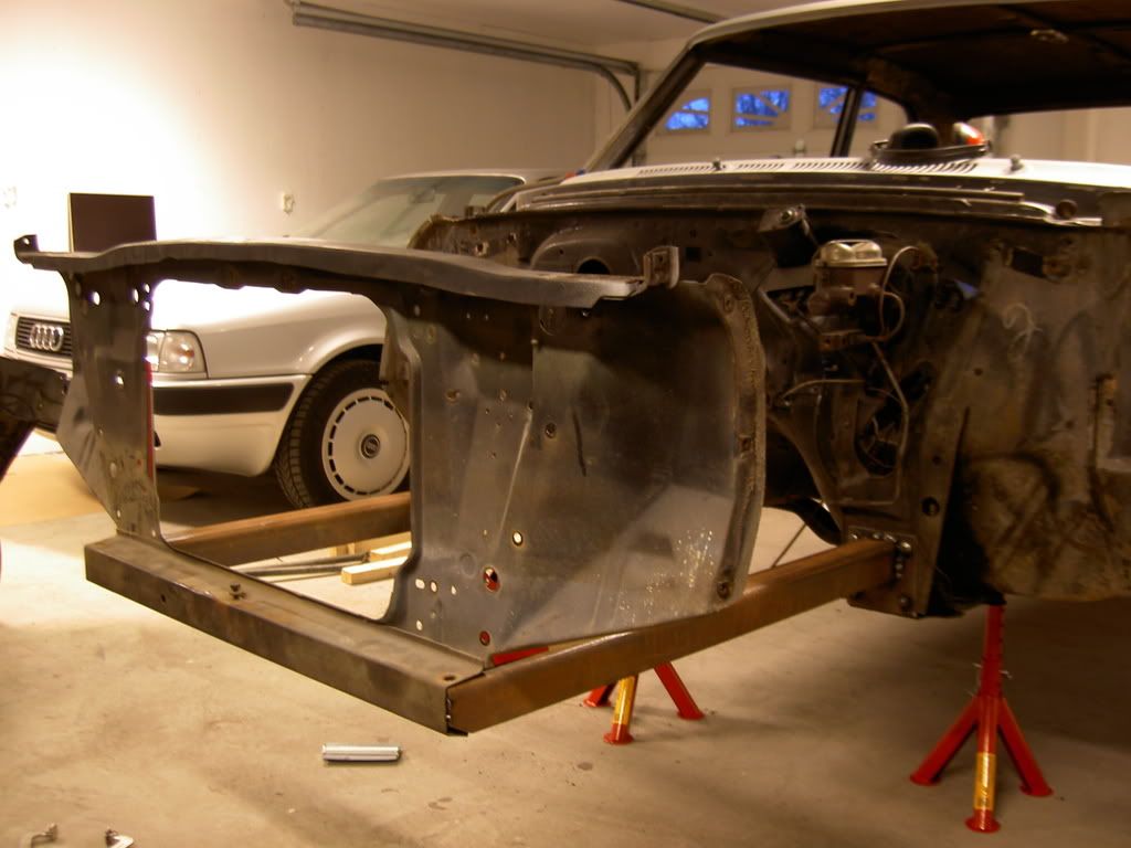 I will be building a new front clip around an mustang II crossmember. At the moment i have the crossmember and all the suspension components are ariving to Denmark in the beginning of March hopefully. I could might have been cheaper to buy an entire frontclip but the transport of an entire frontclip to Denmark would have been very expensive, therefore i will be building one myself.