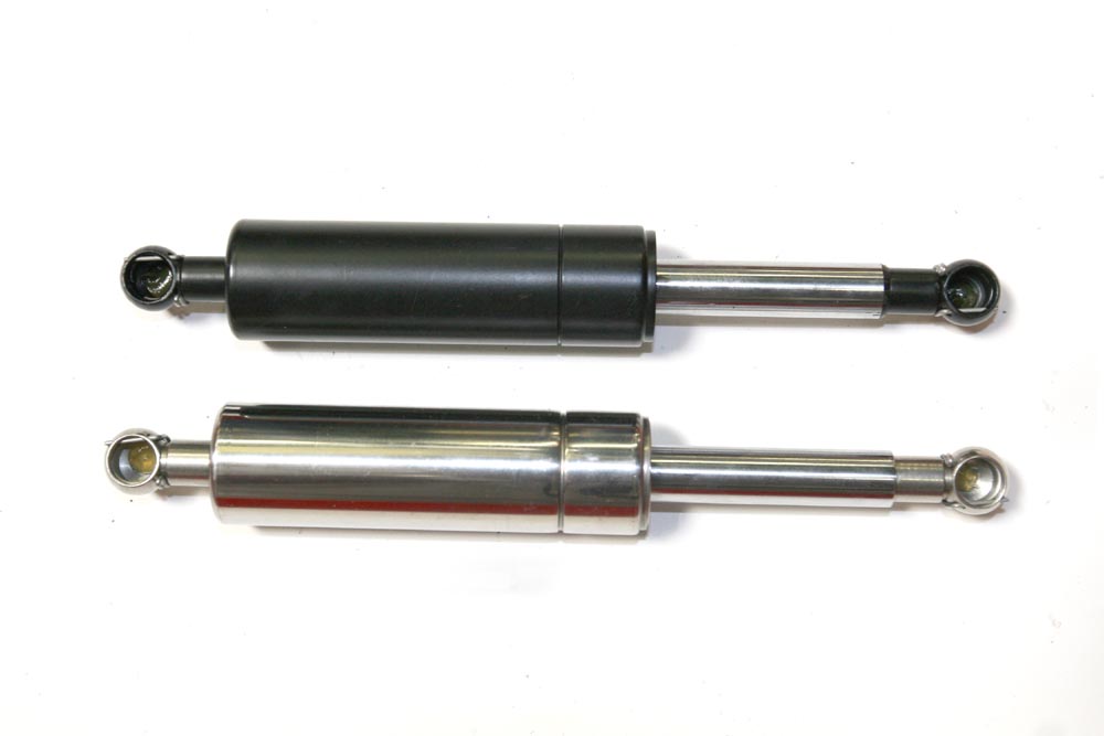Right now we offer our billet hood hinges standard with polished stainless steel struts as well as top of the line bearings that are far superior to any other product on the market. They come with a good warranty and we can offer them in black anodized or polished.