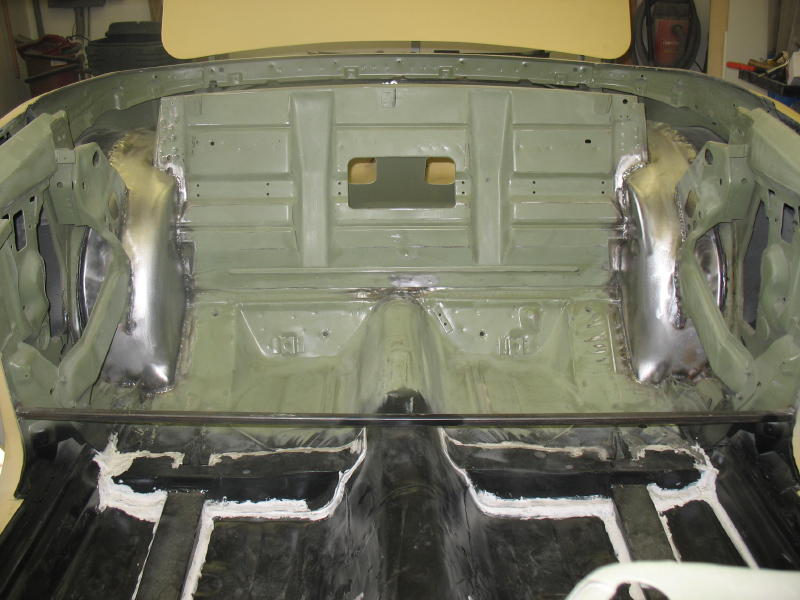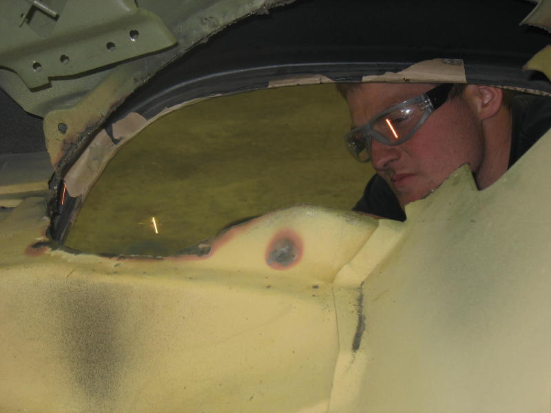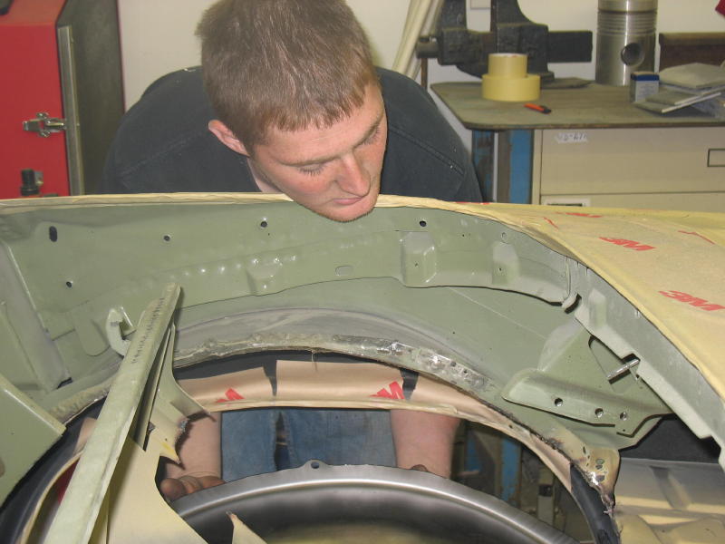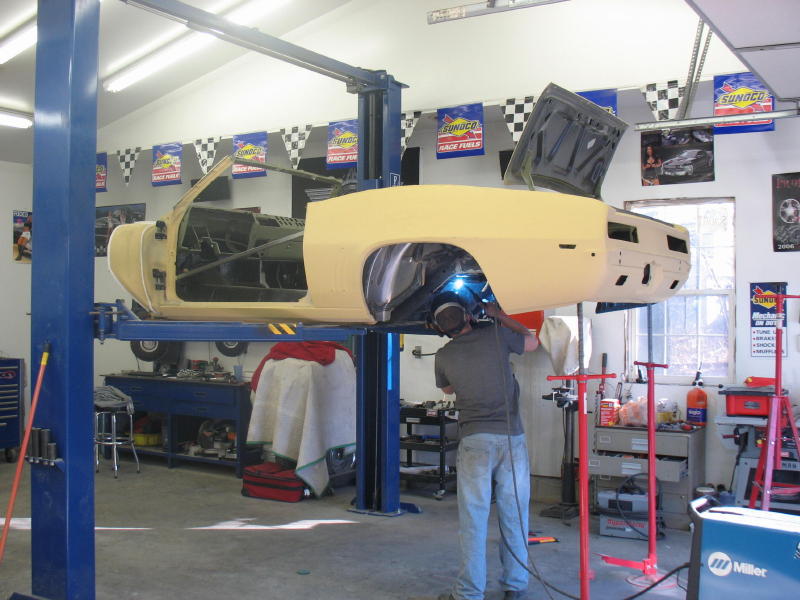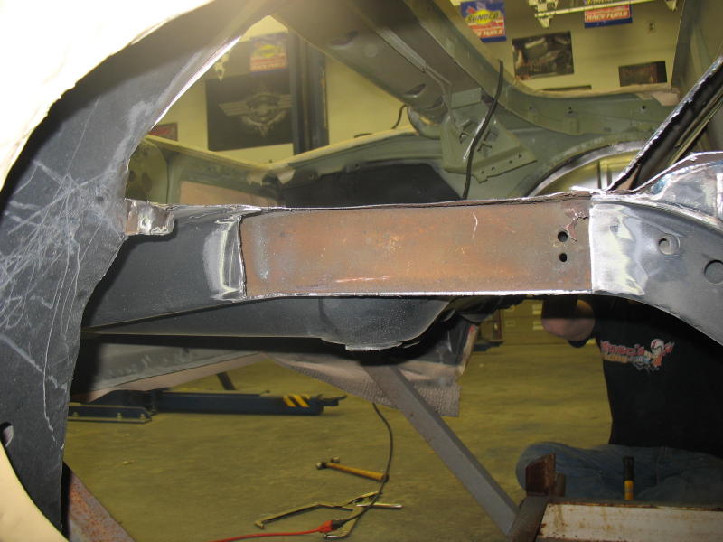 Well my car is back on a forward climb. The mini Tubs are complete along with most of the sheetmetal work. I was a little nervious about doing my first set of mini tubs so I called Frank at Prodigy, he sugusted I get the video and do some homework. But I'm still not very sure of myself! So what did Frank do? He sent his top builder Mike to my house. Mike packed his tools and even brought his own sheetmetal for the frame rails. We tag teamed this thing and had it done in 2 days, including the G-bar and a few other thing along the way. I was just the grunt man, while mike pointed me in the correct direction. This kids has got a major talent for sheetmetal and is going to score in this business. Frank and his family has held my hand for the last 3 years in this build and we're not over yet. Mike and I are planning some ideas for the interior and sound system. Although I'm not sure he knows that yet.