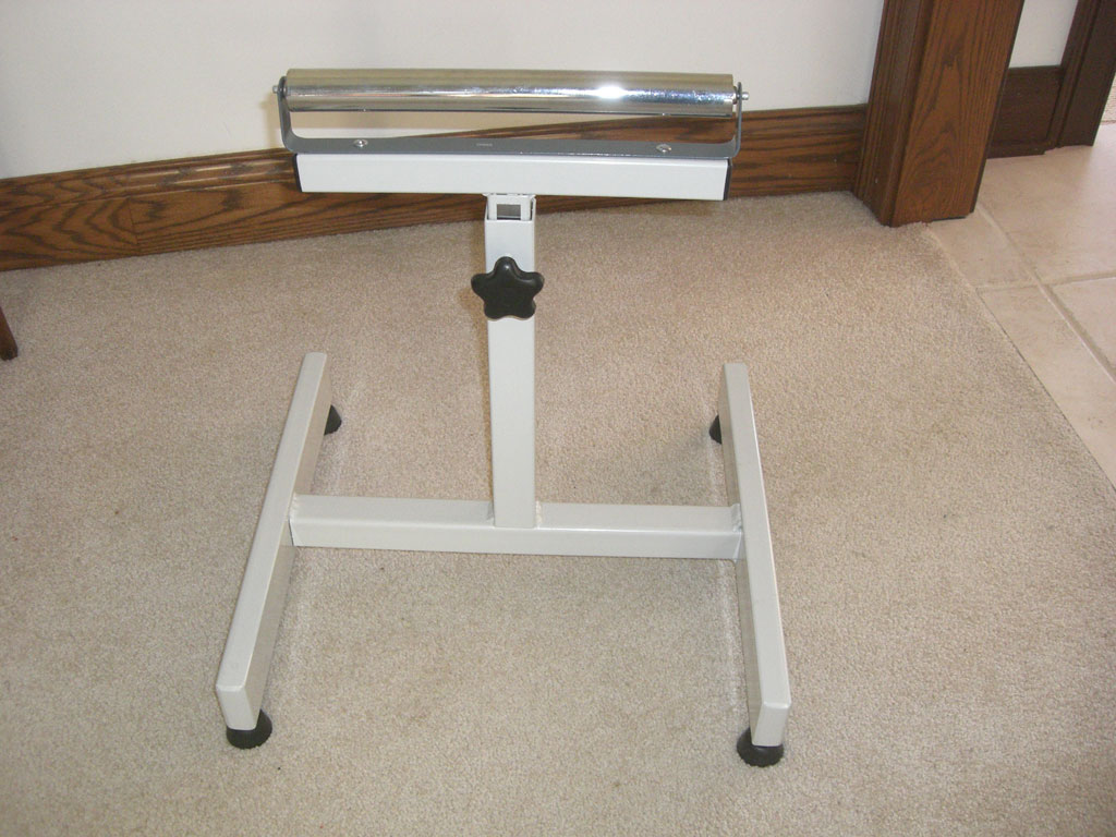 I made two of these for my band saw that I use to cut tube and flat steel stock. My saws working table height is 24 inches – and these reach over that a bit so I can level the material in the machine against the un-even concrete floor in my shop (drain slope). The adjustable rubber feet help level the cross bars – and also reduce noise. I did not paint the side of the adjuster that rides against the tightening knob. Before I painted the units – I polished the metal on that one side, taped it off with painting tape and then painted it. I then pulled the tape, let it dry and put several coats of paste wax on the exposed metal to stop the rust. I’ve had them for a couple years in the garage and they still look new.