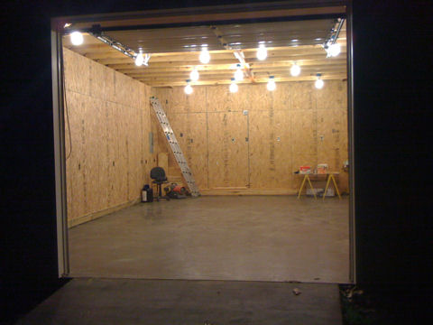 Buy surface mounted linear fluorescent strip lites that use T-8 lamps and electronic ballasts. They cost about ~$20 at Home Depot. Why? Very long life (30,000-46000 hours), no hum, flicker or striations (important when woking around moving parts!), much better color and CRI and probably the most important... they are the most efficient!!!