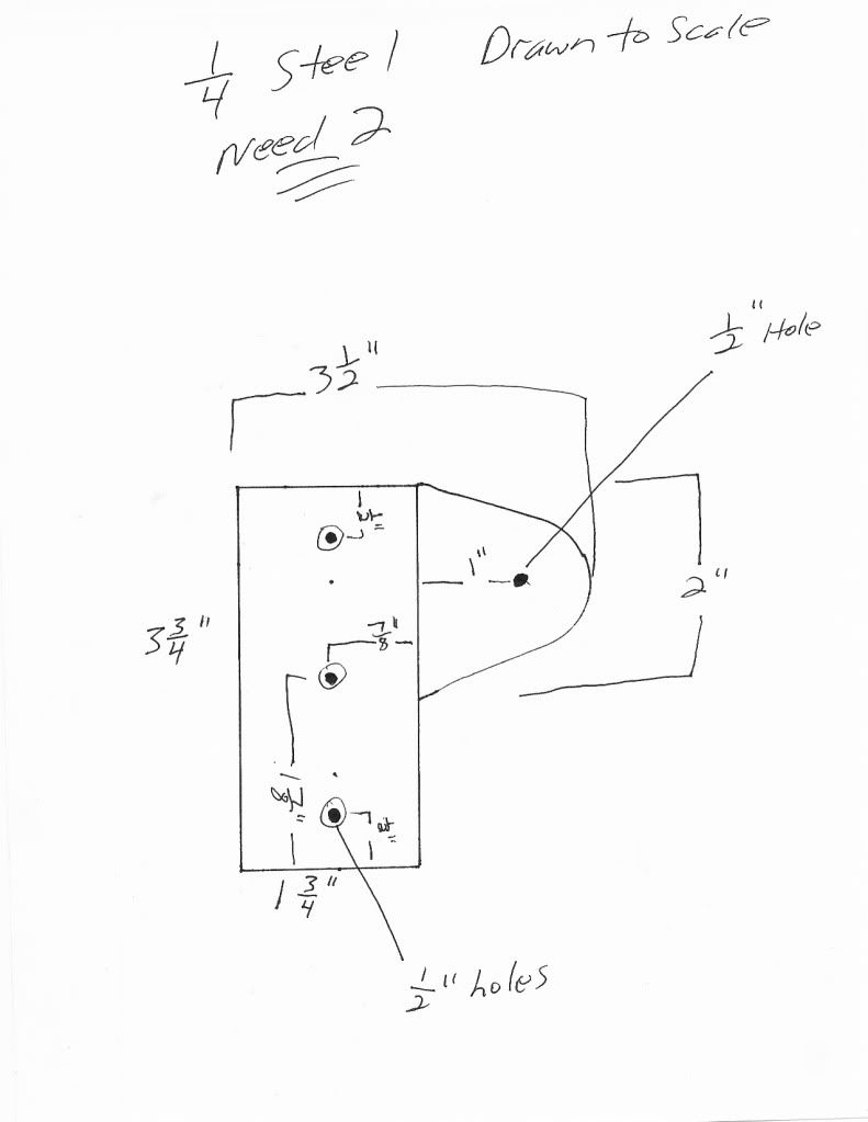 Outside of frame: 1/4 plate with three 1/2 holes and a 1/2 tab for my heim joint.