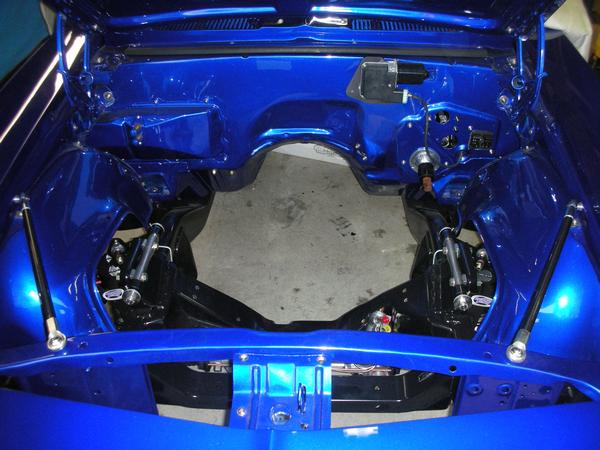 I am 24 years old and after a long, 7 year, full frame-off restoration my car is done. For now. My dad and I have been working on this car together since I was 15. Without his help, the car would be nothing like it is. Thanks Dad!!! Its a pretty much full tilt pro touring car. Body and paint was done by East Coast Muscle Cars and my dad and I did the rest. The car has a full DSE hydroformed subframe and 3" drop leafs w/ QA1 adjustables on the rear (quadralink to come). Tranny is a Tremec 5 speed and the rear is a Fully built GM 12 bolt. It has a hydroboost system w/ BAER Track Plus 2-piece 13" rotors front and rear w/ 18" Intro wheels. The motor is a 355 fully forged small block with the off road race cam, pro action heads, brodix intake, Holley carb and Dougs headers w/ 3" SLP Resonators. An LS3 is hopefully soon on the way. Interior is customized too. Ill have more pics to come.