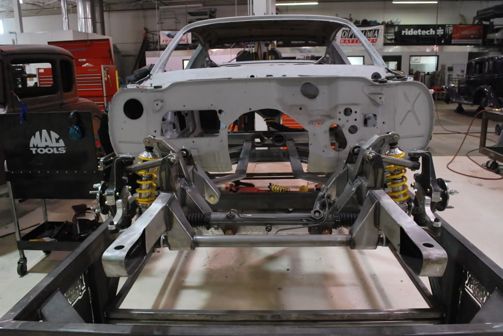 Here are a few shots of the completed chassis. This is part of our new Fast Track chassis line up. We are building vehicle specific chassis for 1st and 2nd gen Camaro's, 62-67 Novas, 64-71 Mustangs, challenger/'cuda, Chevelle/GTO/A Body and a few others.