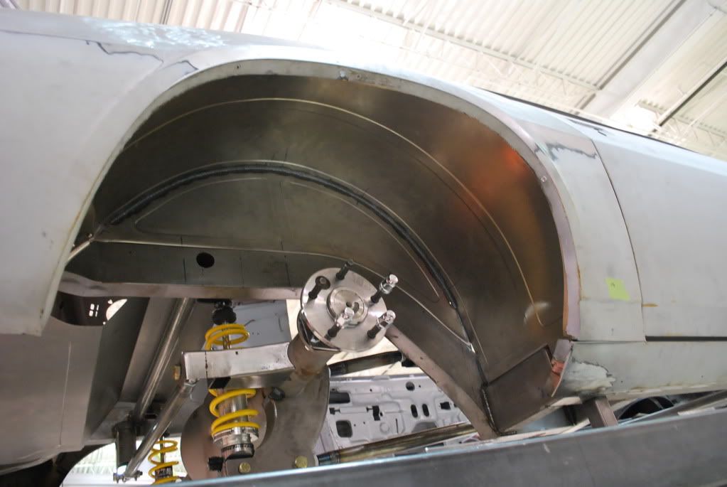 (The car had already been primed and the fenders painted when we received it. All of this will eventually be re-done.)