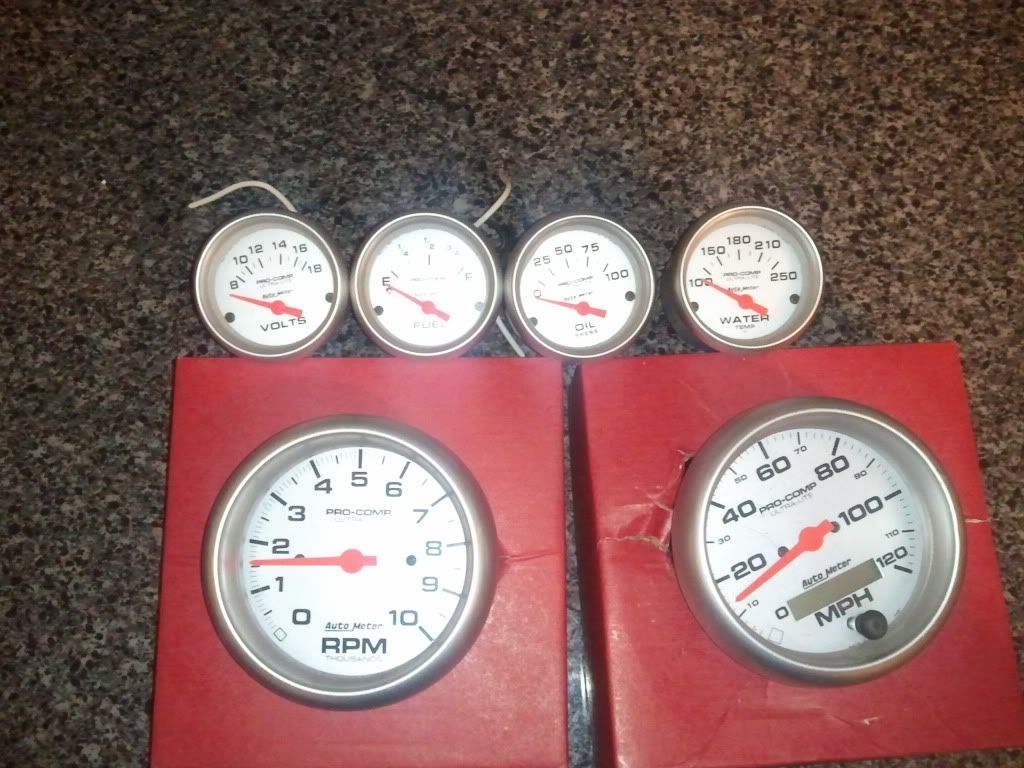 Hey guys pro-comp ultra lite guages for an LS-1 have oil sending unit and lights for guages also brackets for mounting. Selling them for 350.00 got a wedding comming up and need some extra cash. buyer pays shipping can get more pics on request. Shipping from 67037