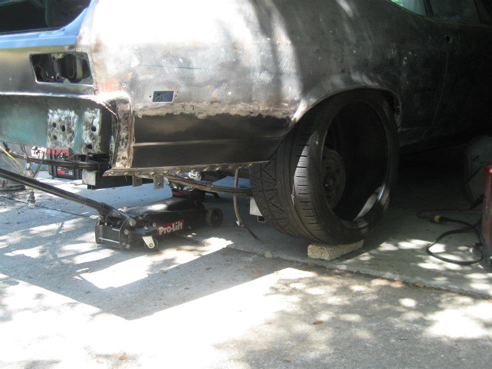 most of the pics are from a year ago. right now practically the whole car is bare metal and most of the metal work is done. the pics of the tire is me trying to see how big of a tire i can fit under the stock rear end. thats a 295 from a magnesium z06 rim