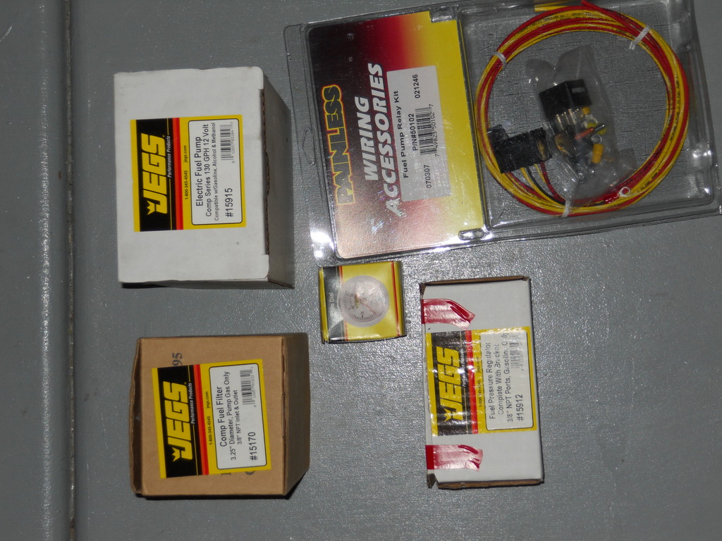 - Complete Jegs fuel pump kit with 130 gph pump, competition filter, fuel pressure regulator, fuel pressure gauge, and Painless fuel pump relay kit