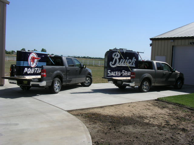 Nice nostalgia! You defiantly have room for those signs in your garage. They would look ridicules in mine!