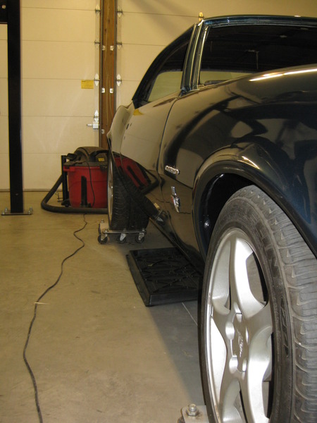 The car has a factory subframe painted black mounted with DSE or GW (I forget which) solid aluminum bushings, third gen IROC steering box, new inner and outer tierods, new idler arm, SPC upper and lower control arms, AFCO spring adjusters with 500 lb./in. springs and AFX spindles.