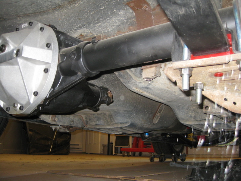 It has a 12 bolt 3.55 positraction rear (out of my '68, newly rebuilt in 2012), with Flex-Form composite leaf springs with swivel bushings front and rear and C5 internal parking brake brakes with red powder coated calipers and C5 rotors installed.